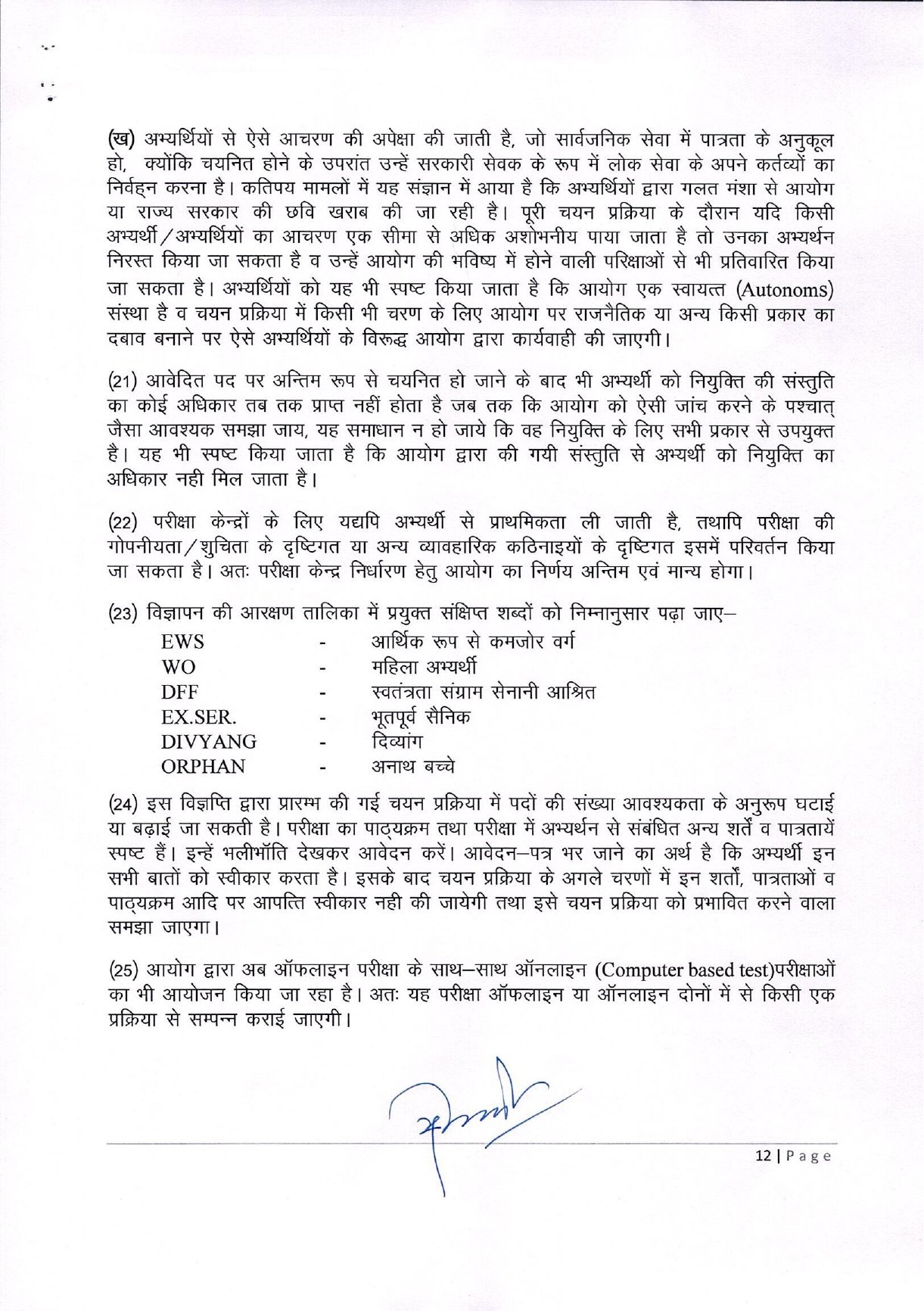 अभ्यर्थी अपने प्रवेश पत्र आयोग की वेबसाइट से ही डाउनलोड कर सकेंगे। आयोग द्वारा डाक के माध्यम से प्रवेश पत्र निर्गत नहीं किए जाएंगे। अभ्यर्थियों को महत्वपूर्ण सूचनाएं भी आयोग की वेबसाइट, E-Mail या S.M.S. से ही मिलेंगी। इसलिए अभ्यर्थी आवेदन पत्र में स्वयं का Phone/Mobile Number व E-Mail ही भरें।