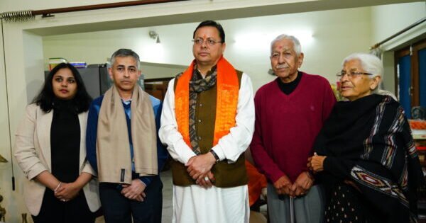 देहरादून : मुख्यमंत्री पुष्कर सिंह धामी ने कतर से सकुशल वापस लौटे नौ सेना के पूर्व अधिकारी सौरभ वशिष्ट को सम्मानित कर शुभकामनायें दी। मुख्यमंत्री ने बुधवार को सायं सौरभ वशिष्ट के टर्नर रोड स्थित आवास पर जाकर उनके परिजनों से मुलाकात की तथा उनकी खुशी में शामिल हुए। मुख्यमंत्री ने कहा कि सौरभ की सकुशल रिहाई विश्व में प्रधानमंत्री नरेन्द्र मोदी एवं भारत की बढ़ती ताकत की पहचान है। यही नहीं उनकी रिहाई मोदी है तो मुमकिन है का स्पष्ट उदाहरण भी है।
