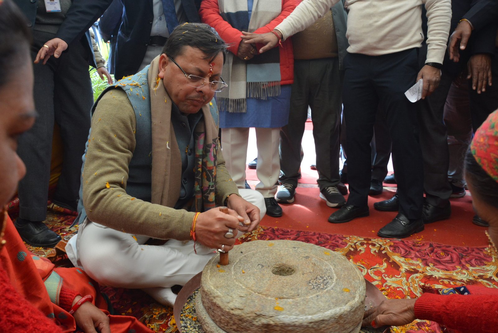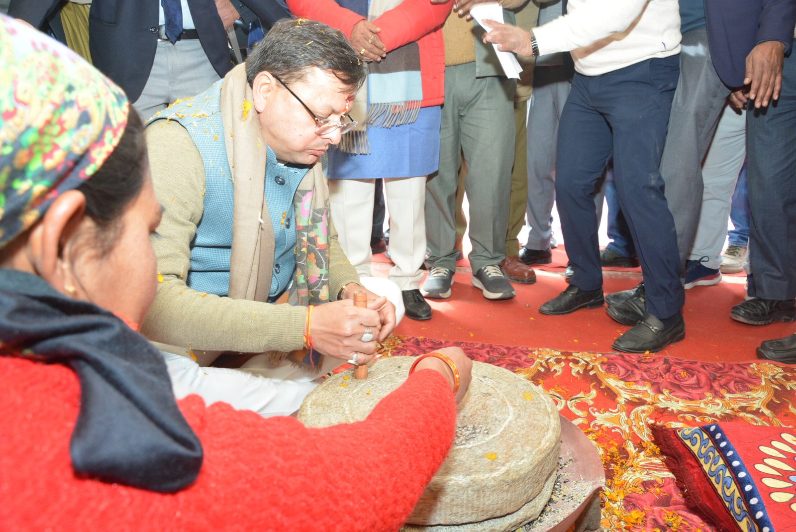 इसके पश्चात मुख्यमंत्री द्वारा मुख्य कार्यक्रम स्थल कंडोलिया मैदान में मुख्य अतिथि के रूप में प्रतिभाग करते हुए विभिन्न विभागों की ‘‘16 सामान्य स्टॉल, 05 लाइव स्टॉल (भीमल पेंटिंग, पिरूल व खजूर के क्राफ्ट निर्माण, उत्तराखण्ड के भाण्ड-कुण्ड, मथनी से मठ्ठा निकालना, जांदरा व ओखली का प्रदर्शन) तथा फोटो प्रदर्शनी (जी-20, बीट्ल्स फेस्टिवल तथा सिलक्यारा टनल रेस्क्यू) का अवलोकन करते हुए नारी सशक्तिकरण और प्रदेश के विकास के संबंध में केन्द्र व राज्य सरकार द्वारा किये गये कार्यों और प्रयासों की जानकारी प्राप्त की। कार्यक्रम स्थल में मुख्यमंत्री ने पशुपालन विभाग के स्टॉल में बदरी गाय और बछिया का पूजन कर लाइव स्टॉल में ओखली से अनाज कूटा और जंदरे में भी हाथ अजमाया।