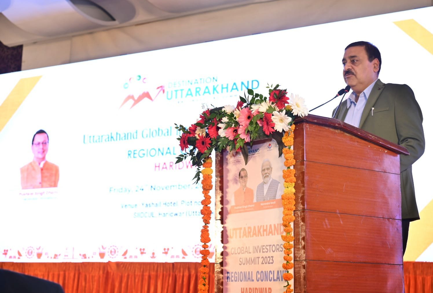 हरिद्वार : मुख्यमंत्री पुष्कर सिंह धामी ने शुक्रवार को होटल यशैल सेण्टर(रेडिशन ब्लू) में ग्लोबल इंवेस्टर्स समिट-2023 के अन्तर्गत क्षेत्रीय निवेश कान्क्लेव में प्रतिभाग किया। इस अवसर पर राज्य में आर्थिक विकास, निवेश प्रोत्साहन व रोजगार के अवसर सृजित किये जाने तथा राष्ट्रीय व अंतरराष्ट्रीय निवेशकों को निवेश हेतु आकर्षित करने के उद्देश्य से 8 व 9 दिसम्बर 2023 को देहरादून में उत्तराखण्ड ग्लोबल इन्वेस्टर समिट 2023 के आयोजन के क्रम में जनपद हरिद्वार व देहरादून को रू0 10000 करोड़ का एम.ओ.यू. हेतु लक्ष्य दिया गया था जिसके सापेक्ष जनपद हरिद्वार एवं जनपद देहरादून में 304 एम.ओ.यू. धनराशि रू0 37820.47 करोड़ के प्रस्ताव हस्ताक्षर किये गये।