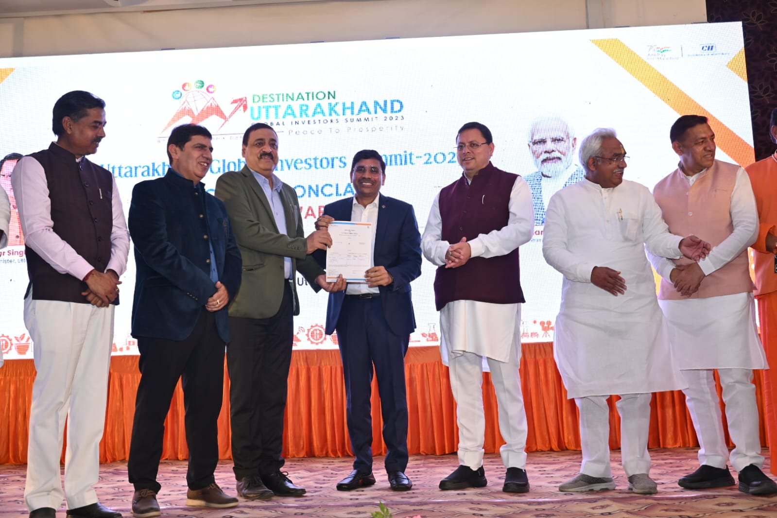 मुख्यमंत्री ने प्रधानमंत्री नरेन्द्र मोदी का जिक्र करते हुये कहा कि प्रधानमंत्री के संकल्प-वर्ष 2025 तक देश की अर्थव्यवस्था को 5 ट्रिलियन बनाने के के क्रम में हमारे राज्य ने भी अपनी जीएसडीपी को आगामी 5 वर्षों में दोगुना करने का लक्ष्य निर्धारित किया है, जिसके क्रम में हमने ’’सशक्त उत्तराखण्ड मिशन’’ प्रारंभ किया है। दिसंबर में आयोजित होने वाली ’’उत्तराखण्ड ग्लोबल इनवेस्टर्स समिट-2023’’ इसी मिशन का एक विशिष्ट अंग है। उन्होंने कहा कि हमने प्रधानमंत्री से भी प्रेरणा ली, जिन्होंने गुजरात राज्य के मुख्यमंत्रित्व काल में गुजरात राज्य में ब्राईबैं्रट गुजरात की शुरूआत की थी, तब लोगों का उतना रूझान नहीं था, लेकिन आज गुजरात राज्य उद्योग के क्षेत्र में दुनिया का मॉडल बना हुआ है। उसी से प्रेरणा लेकर डेस्टिीनेशन उत्तराखण्ड शुरू किया गया है। उन्होंने कहा कि इस समिट के लिये अभी तक दो लाख करोड़ रूपये के करार निवेशकों के साथ हो चुके हैं तथा निवेशकों का निवेश करने का क्रम जारी है।
