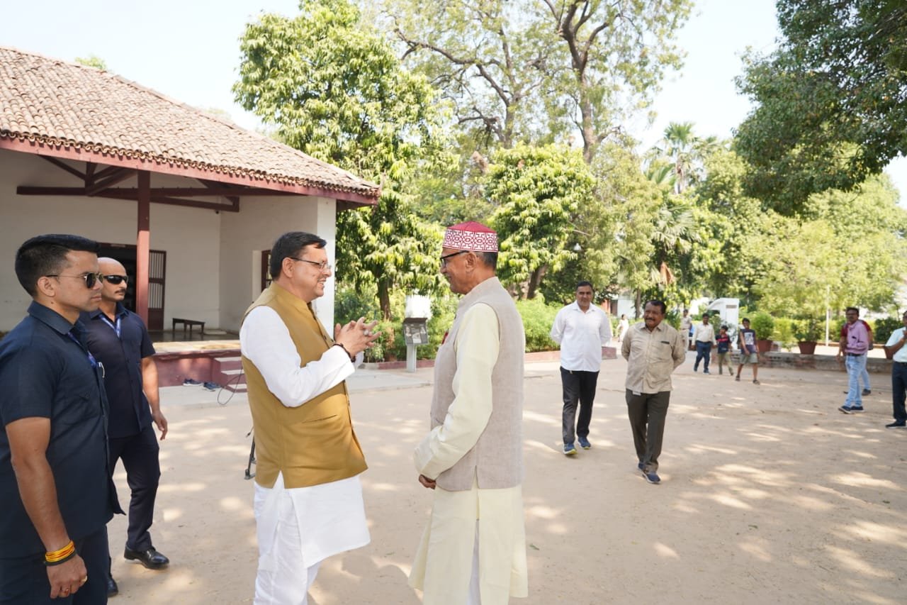 मुख्यमंत्री पुष्कर सिंह धामी अहमदाबाद में पहुँचे गांधी आश्रम, चलाया चरखा, राष्ट्रपिता को किया याद