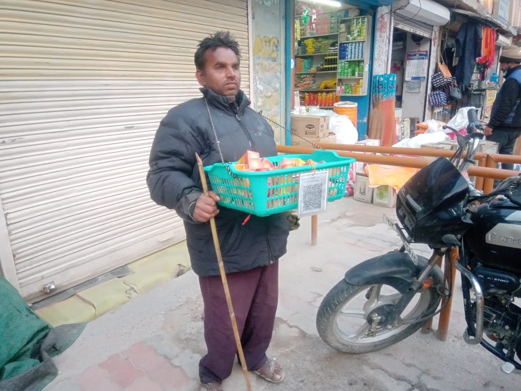 श्री बदरीनाथ धाम/ गोपेश्वर : श्री बदरीनाथ धाम में दोनों आंखों से दिब्यांग जिला- दुमका झारखंड निवासी कृष्णपाल (उम्र 35 ) वर्ष 2007 से श्री बदरीनाथ धाम में फेरी लगाकर, डलिया गले में डालकर भगवान श्री बदरीनाथ धाम का प्रसाद,पूजा सामग्री, सिंदूर आदि बेचते है इसी से बदरीनाथ में अकेले रहकर अपना जीवन यापन करते है वह कहते है कि वह जन्मांध है इसका उन्हें कुछ भी मलाल नही है। वह मौसम का अनुमान बता देते है तो जिस व्यक्ति की आवाज तथा नाम एक बार सुन लेते है दूर से आवाज से पहचान जाते है। सिक्कों तथा नोटों की पहचान करते है अपने वस्त्र भी स्वयं धोते है तथा भोजन तक बनाते है की पेड फोन नंबर डायल कर लेते है तथा फोन अच्छी तरह अटेंड करते है।
