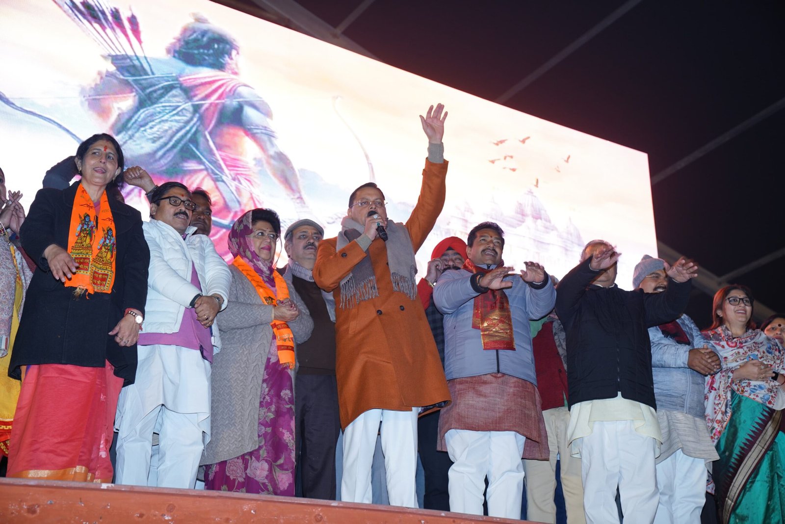 मुख्यमंत्री पुष्कर सिंह धामी ने कहा कि लंबे इंतजार के बाद भगवान श्री राम मंदिर की प्राण प्रतिष्ठा का शुभ अवसर हम सबको देखने को मिल रहा है। सौभाग्य भरे क्षण के हम सभी साक्षी होंगे। उन्होंने कहा बड़ी संख्या में माताओ बहनों ने दीपोत्सव कार्यक्रम में आकर भगवान श्री राम के प्रति अपनी आस्था दिखाई है। जन-जन के सहयोग एवं भक्ति के कारण 1.5 लाख से अधिक दीप प्रज्वलित किए गए हैं। मुख्यमंत्री ने कहा कि हम राम की कृपा से इस भव्य दीपोत्सव में आए हैं। उन्होंने कहा प्रधानमंत्री नरेंद्र मोदी के नेतृत्व में राम मंदिर बनाए जाने का मार्ग प्रशस्त हुआ है। आज उन्हीं के नेतृत्व में हमारा देश निरंतर प्रगति के पथ पर अग्रसर है। इस दौरान कार्यक्रम में सांसद माला राज्यलक्ष्मी शाह, भाजपा संगठन महामंत्री अजेय कुमार, एवं अन्य लोग मौजूद रहे।