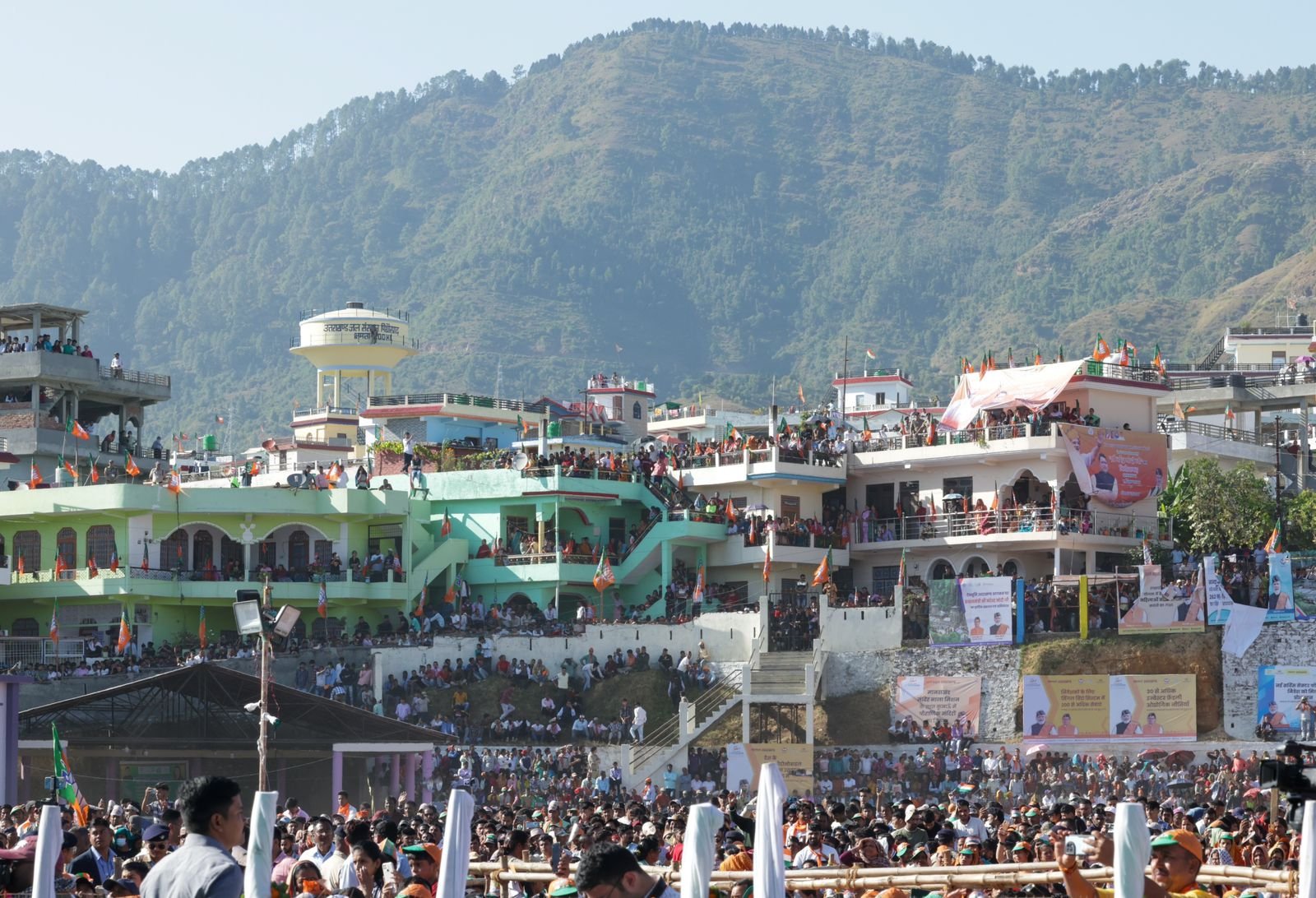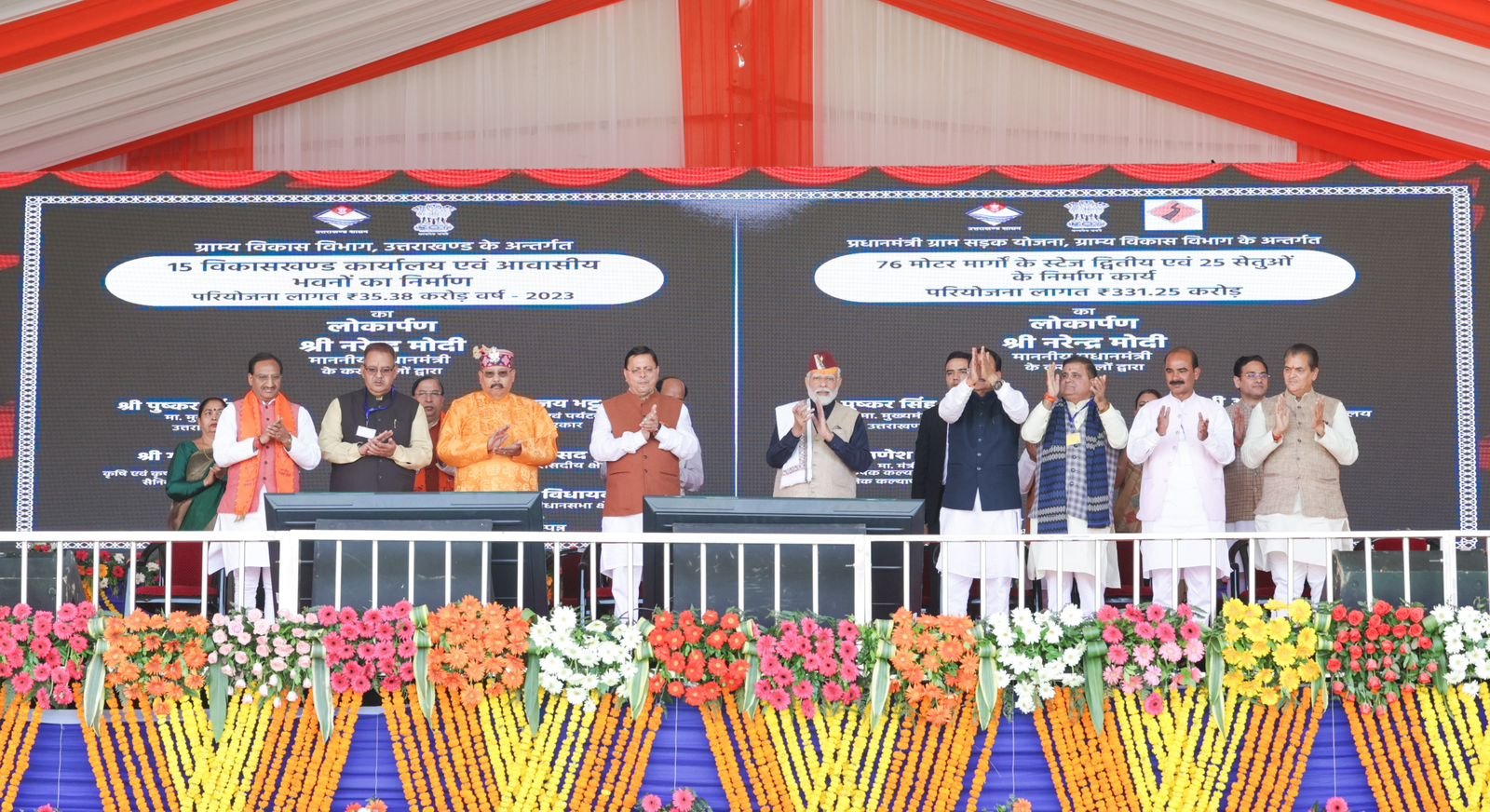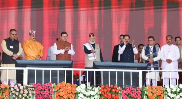 पिथौरागढ़ : प्रधानमंत्री नरेन्द्र मोदी ने उत्तराखण्ड को लगभग 04 हजार 200 करोड़ रूपये की सौगात दी। पिथौरागढ़ में आयोजित कार्यक्रम में प्रधानमंत्री ने राज्य की 23 महत्वपूर्ण परियोजनाओं का लोकार्पण एवं शिलान्यास किया। राज्य की जिन योजनाओं का शिलान्यास किया गया उनमें 21 हजार 398 पॉलीहाउस निर्माण, उच्च घनत्व वाले सघन सेब बागानों की योजना, राष्ट्रीय राजमार्गों पर 02 लेन एवं ढलान उपचार के 05 कार्य, राज्य में 32 पुलों का निर्माण, एसडीआरएफ के तहत अग्नि सुरक्षा बुनियादी ढांचे और बचाव उपकरणों को मजबूत करना, देहरादून में राज्य आपातकालीन परिचालन केंद्र का अपग्रेडेशन, बलियानाला, जनपद नैनीताल में भूस्खलन की रोकथाम हेतु उपचार, 20 मॉडल डिग्री कॉलेजों में हॉस्टल और कंप्यूटर लैब का निर्माण, सोमेश्वर, अल्मोडा में 100 बिस्तरों वाला उप जिला अस्पताल, चंपावत में 50 बिस्तरों वाले अस्पताल ब्लॉक का निर्माण, रूद्रपुर में वेलो-ड्रोम निर्माण कार्य, स्पोर्ट्स स्टेडियम, हल्द्वानी में एस्ट्रो टर्फ हॉकी मैदान का निर्माण, चार धाम की भांति मानसखंड के मंदिर क्षेत्रों का विकास, मानसखंड मंदिर माला मिशन के अंतर्गत जागेश्वर धाम, हाट कालिका एवं नैना देवी मंदिर में अवस्थापना सुविधाओं का विकास शामिल हैं।