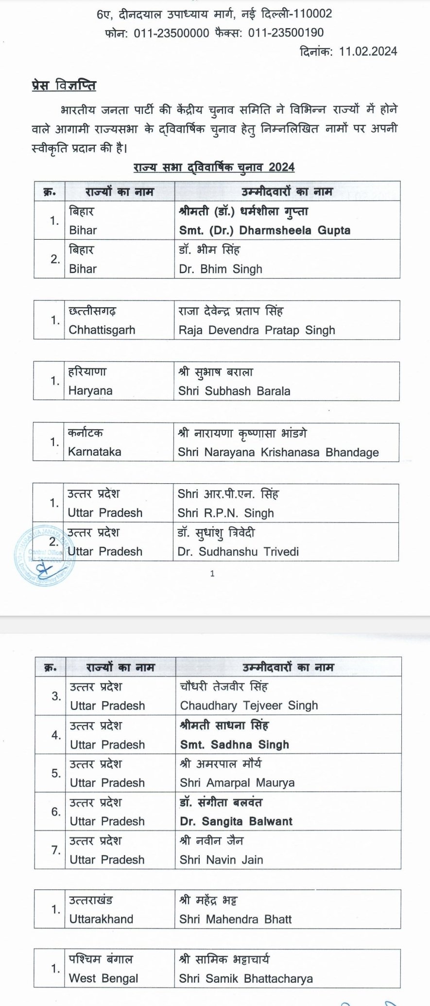 15 फरवरी तक राज्यसभा की एक सीट के लिए उत्तराखंड में नामांकन होना है और 11 फरवरी को नाम का ऐलान भाजपा हाई कमान के द्वारा किया गया है। महेंद्र भट्ट का राज्यसभा पहुंचना लगभग तय हैं क्योंकि बहुमत उत्तराखंड में भाजपा के पास पूर्ण बहुमत का है, इसलिए उम्मीद की जा रही है कि कांग्रेस राज्यसभा की एक सीट के लिए शायद उम्मीदवार मैदान में उतरे और कांग्रेस अगर उम्मीदवार नहीं उटारती है तो महेंद्र भट्ट का निर्विरोध राज्यसभा सीट के लिए चुना जाना तय है।