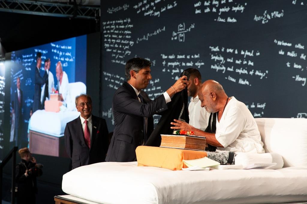 नई दिल्ली । ब्रिटिश प्रधान मंत्री ऋषि सुनाक मंगलवार को प्रसिद्ध आध्यात्मिक गुरु मोरारी बापू की कैम्ब्रिज विश्वविद्यालय के परिसर में हो रही राम कथा में पहुंचे और आध्यात्मिक कार्यक्रम की शोभा बढ़ाई। यह एक महत्वपूर्ण पल है क्योंकि मोरारी बापू की 921वीं कथा, जो मानस विश्वविद्यालय के नाम से कैम्ब्रिज विश्वविद्यालय में आयोजित की गई है, पहला ऐसा हिन्दू कार्यक्रम है जो की एक ब्रिटिश विश्वविद्यालय के प्रांगण में किया गया हो। हिंदू धर्म के अनुयायी और ब्रिटेन के भारतीय मूल के पहले प्रधान मंत्री, ऋषि सुनाक ने मोरारी बापू की व्यास पीठ पर पुष्पांजलि अर्पित की और साथ ही “जय सिया राम” का जयकारा भी लगाया।