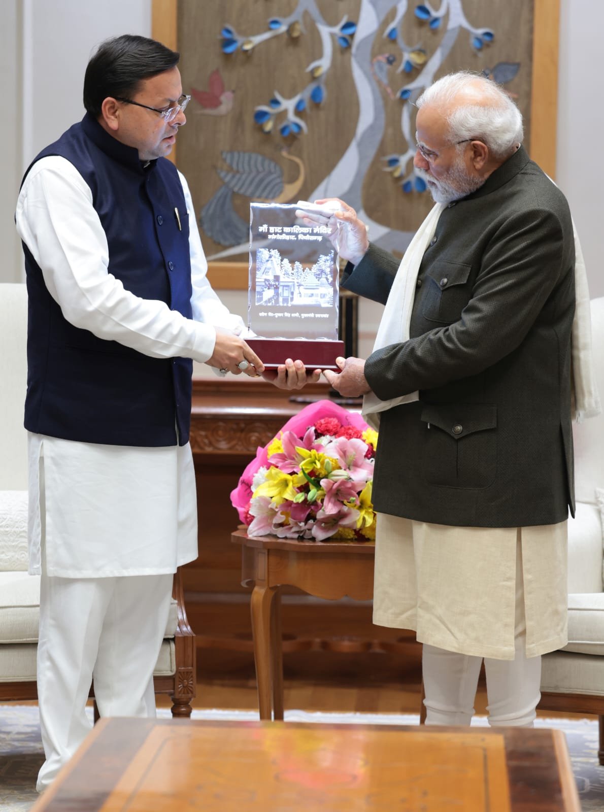 नई दिल्ली : मुख्यमंत्री पुष्कर सिंह धामी ने शनिवार को नई दिल्ली में प्रधानमंत्री नरेन्द्र मोदी से मुलाकात कर उन्हें देहरादून में 08 व 09 दिसम्बर, 2023 को आयोजित हो रहे वैश्विक निवेश सम्मेलन के उद्घाटन हेतु आमंत्रित किया। मुख्यमंत्री ने प्रधानमंत्री नरेन्द्र मोदी का सिल्क्यारा सुरंग में फंसे श्रमिकों की निकासी के दौरान दिये गये मार्गनिर्देशन और सहयोग हेतु आभार व्यक्त किया। मुख्यमंत्री ने कहा कि प्रधानमंत्री द्वारा इसके लिये सभी आवश्यक संसाधन एवं मानवीय सहायता उपलब्ध कराने के साथ ही निरन्तर इस विकट परिस्थिति का अनुश्रवण करने तथा इस अभियान से जुडे लोगों, श्रमिकों एवं उनके परिजनों का मनोबल बढाने से ही हम इस गम्भीर संकट से अपने श्रमिक भाइयों को सुरक्षित वापस लाने में सफल हो पाये है।