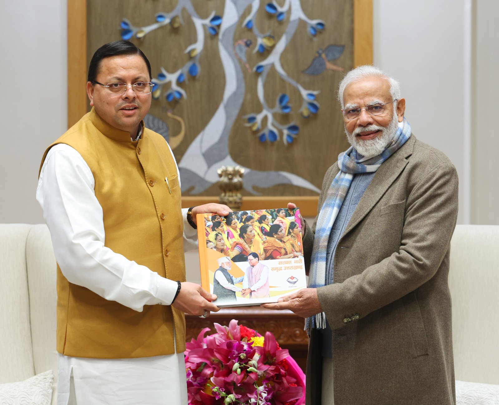 मुख्यमंत्री ने प्रधानमंत्री को उत्तराखण्ड की महिला स्वयं सहायता समूहों द्वारा तैयार की गई सामग्री की भेंट