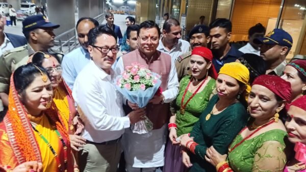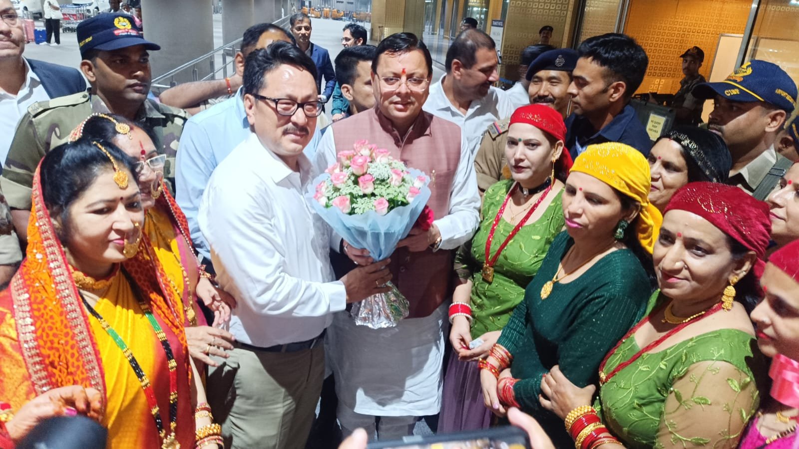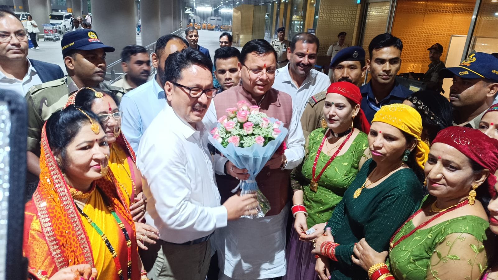 मुख्यमंत्री पुष्कर सिंह धामी का छत्रपति शिवाजी महाराज अंतरराष्ट्रीय एयरपोर्ट मुंबई में प्रवासी उत्तराखंडियों ने किया भव्य स्वागत