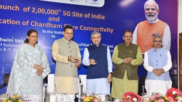 देहरादून : मुख्यमंत्री पुष्कर सिंह धामी एवं केंद्रीय संचार एवं रेल मंत्री अश्विनी वैष्णव ने बुधवार को मुख्यमंत्री आवास स्थित मुख्य सेवक सदन में आयोजित कार्यक्रम में उत्तराखण्ड के पवित्र धाम गंगोत्री में संपूर्ण देश के 2 लाख वीं 5जी साइट का शुभारंभ किया। साथ ही संपूर्ण देश की आस्था के केंद्र चारधाम (बद्रीनाथ, केदारनाथ, गंगोत्री, यमुनोत्री ) में फाइबर कनेक्टिविटी (ऑप्टिकल फाइबर ) के कार्य का शुभारंभ भी किया। जिससे चार धाम को सीधे तौर पर 5-G नेटवर्क से आच्छादित किया जा सकेगा। मोबाइल / इंटरनेट नेटवर्क की गुणवत्ता में सुधार से चार धाम मंदिर परिसरों के आस पास श्रद्धालुओं को बेहतर कॉल कनेक्टिविटी वीडियो कॉल इंटरनेट कनेक्टिविटी की उपलब्धता हो सकेगी। इस दौरान उनके द्वारा चार धाम फाइबर कनेक्टिविटी एवं 5 जी के विस्तार पर आधारित लघु फिल्म का अवलोकन किया।