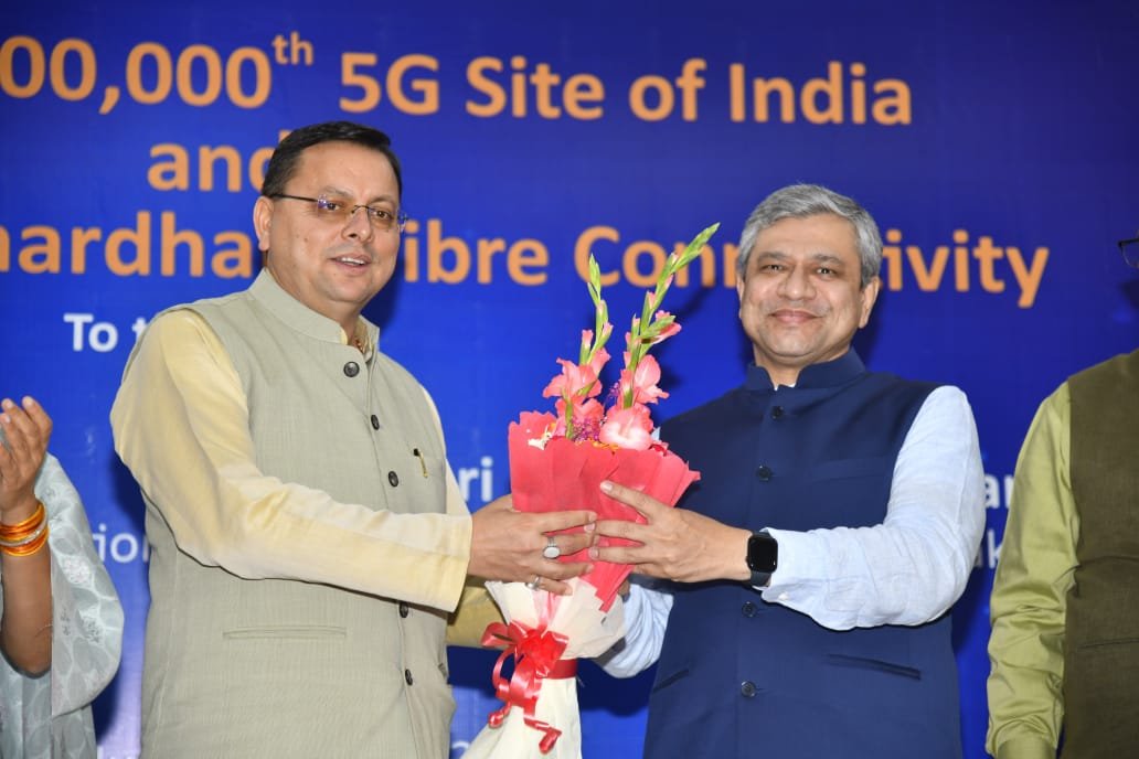 इस अवसर पर केंद्रीय मंत्री अश्विनी वैष्णव ने कहा कि प्रधानमंत्री मोदी जी ने अक्टूबर 2022 को देश में 5-जी की यात्रा का शुभारंभ किया। देश ने टेलीकॉम क्रांति के विभिन्न स्वरूप देखे हैं प्रधानमंत्री नरेंद्र मोदी जी के नेतृत्व में टेलीकॉम क्षेत्र में अभूतपूर्व कार्य किए जा रहे हैं। यह समय टेलीकॉम क्षेत्र का स्वर्णिम काल है। यह हमारे लिए सौभाग्य का विषय है कि हम चार धामों को भी 5 जी और फाइबर कनेक्टिविटी से भी जोड़ रहे हैं। देश से लाखों की संख्या में लोग यहां आते हैं। मुख्यमंत्री श्री धामी जी के विशेष आग्रह पर चार धाम को ऑप्टिकल फाइबर एवं 5 जी से जोड़ने का कार्य शुरू किया गया था। टेलीकॉम क्षेत्र में होने वाले कार्यों में मुख्यमंत्री धामी का हमेशा सहयोग मिला है। आज देश में हर एक मिनट में 5 जी की साइट रेडियेट हो रही है। केंद्रीय मंत्री अश्विनी वैष्णव ने कहा कि आज भारत 5जी के क्षेत्र में दुनिया की बराबरी कर रहा है परंतु 6 जी के क्षेत्र में भारत दुनिया का नेतृत्व करेगा। आज विश्व में भारत की छवि एक नई टेक्नोलॉजी हब के रूप में उभर रही है भारत टेक्नोलॉजी के क्षेत्र में निरंतर विश्व का नेतृत्व कर रहा है। 6 जी के लिये देश के प्रबुद्ध ब्रेन को 100 पेटेंट मिल चुके हैं।