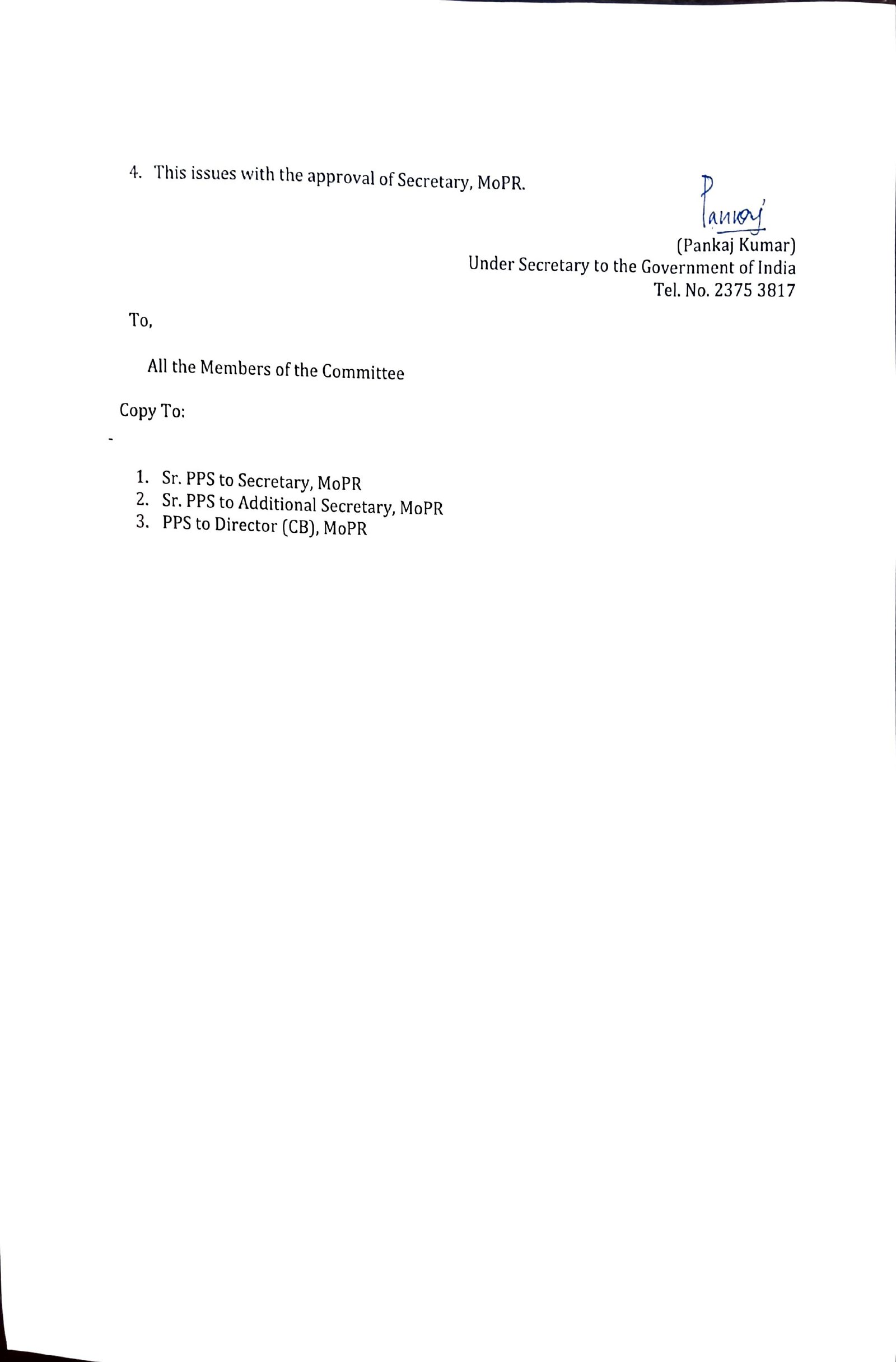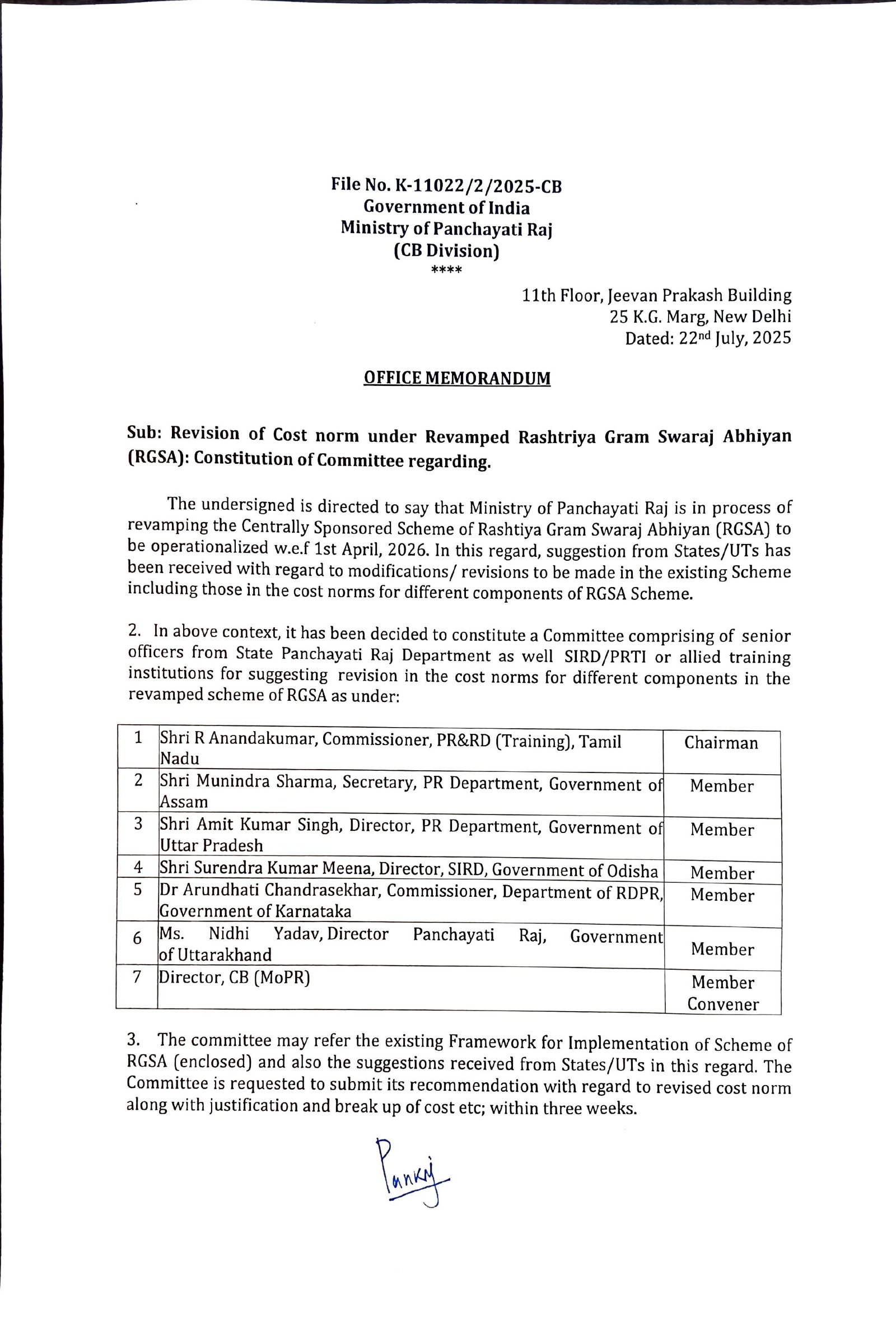 - निदेशक, सीबी (पंचायती राज मंत्रालय) – सदस्य संयोजक