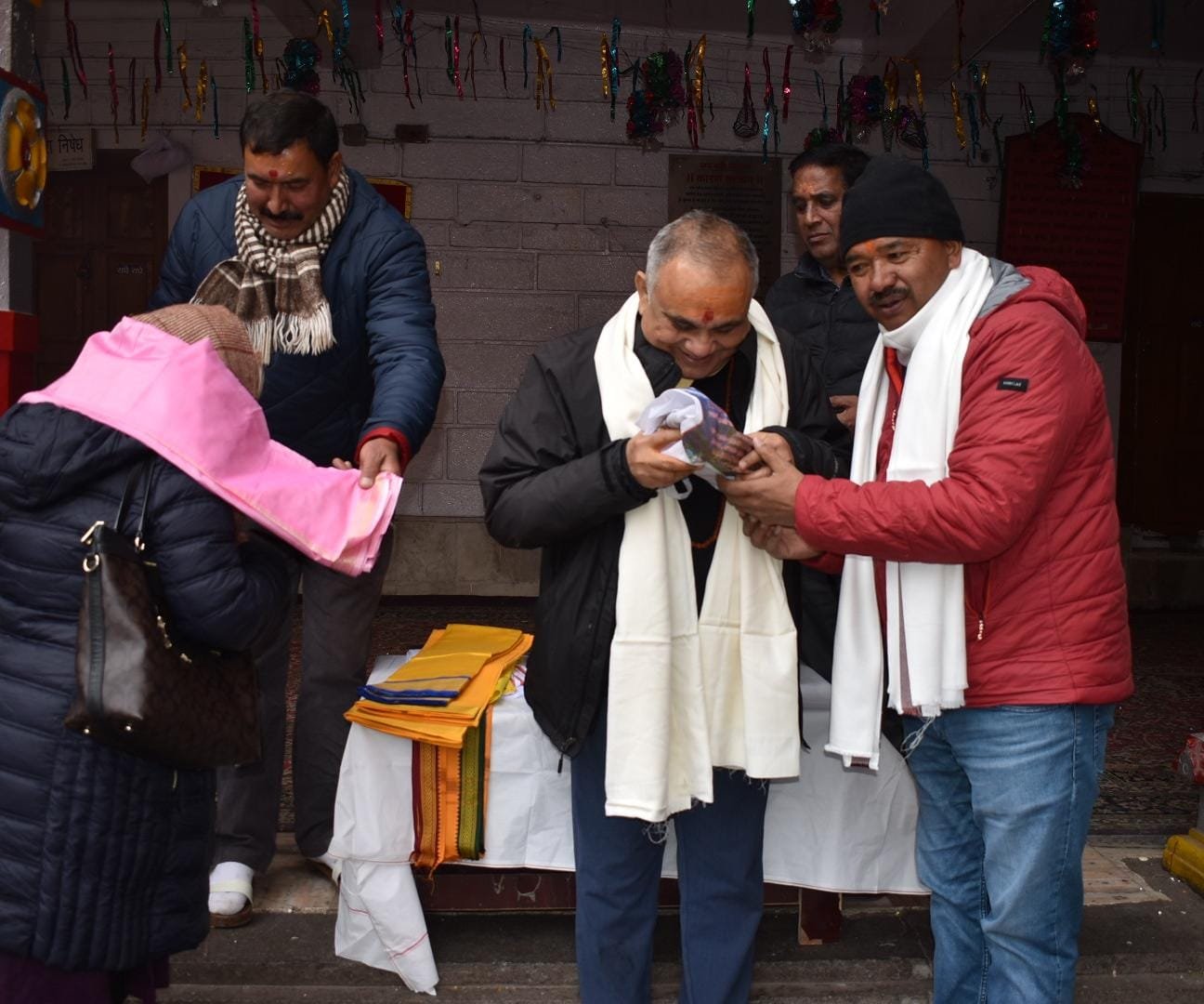 चमोली : भारत निर्वाचन आयोग के चुनाव आयुक्त अनूप चंद्र पांडेय शुक्रवार को बदरीनाथ धाम पहुंचे। उन्होंने भगवान बद्री विशाल की पूजा अर्चना कर लोकमंगल की कामना की। इस दौरान उत्तराखंड के मुख्य निर्वाचन अधिकारी डॉ. वी षणमुगम भी उनके साथ मौजूद थे। मंदिर समिति के उपाध्यक्ष किशोर पंवार, मीडिया प्रभारी डॉ. हरीश गौड़ एवं अन्य पदाधिकारियों ने चुनाव आयुक्त को अंगवस्त्र, शॉल व तुलसी माला भेंट कर स्वागत किया।