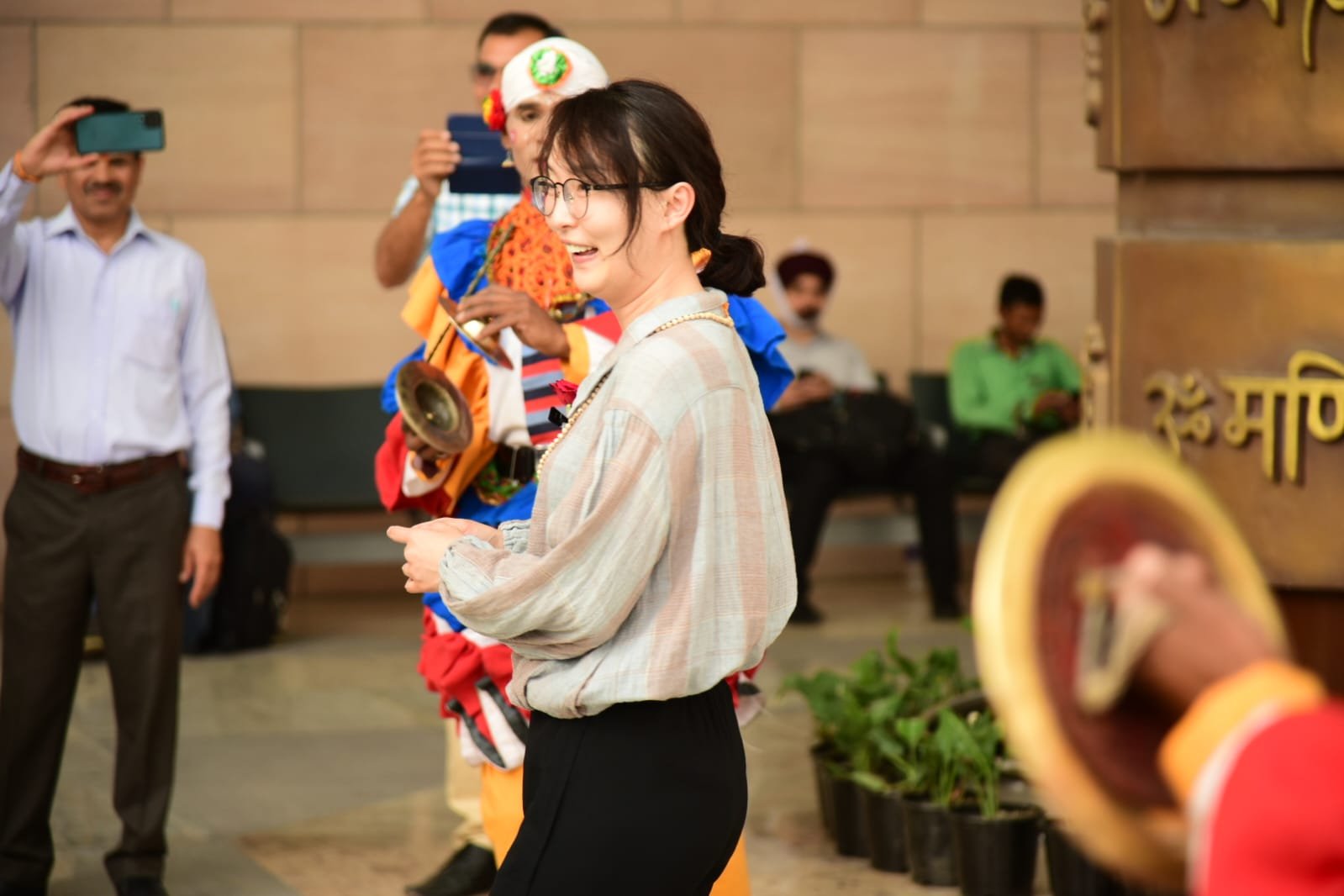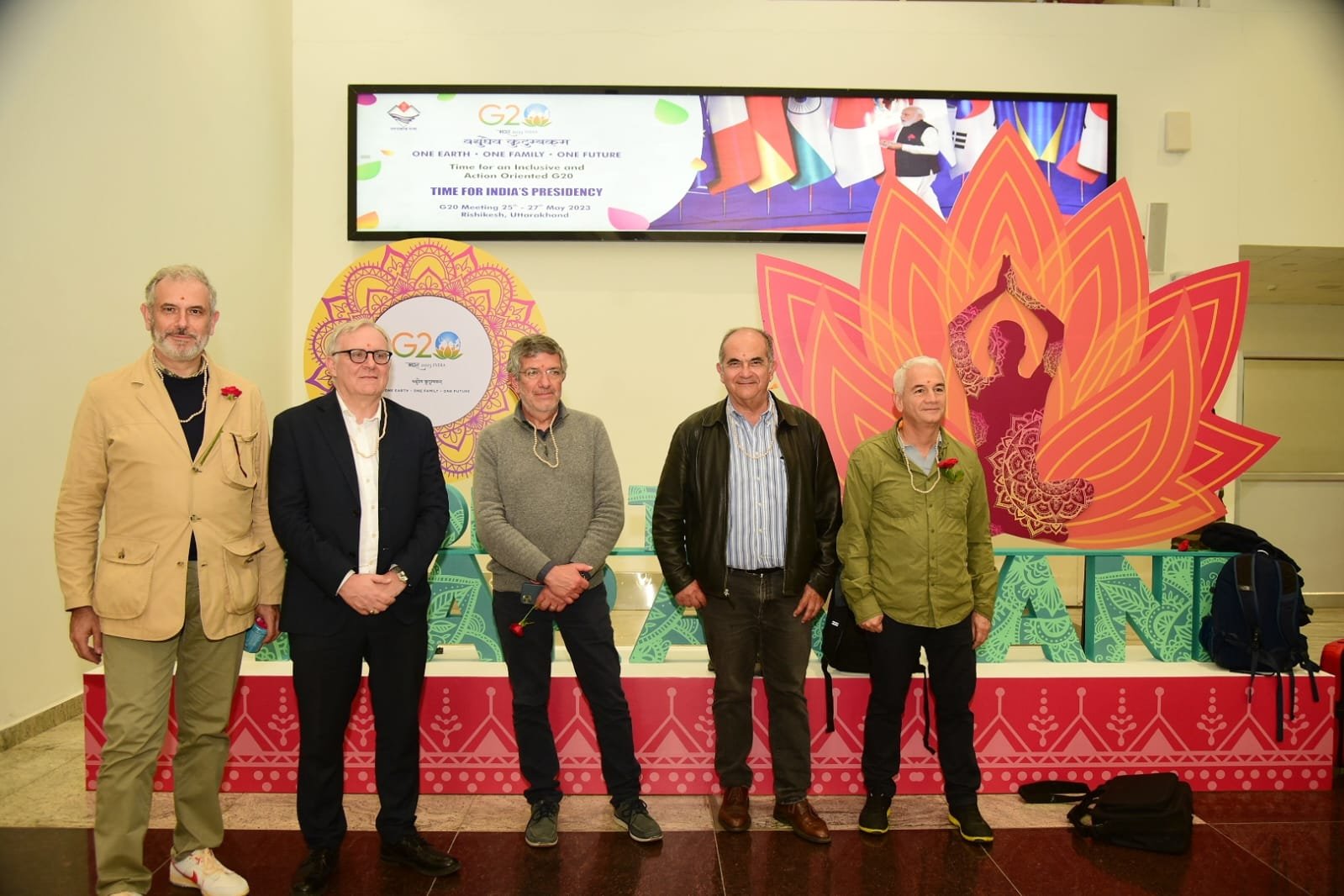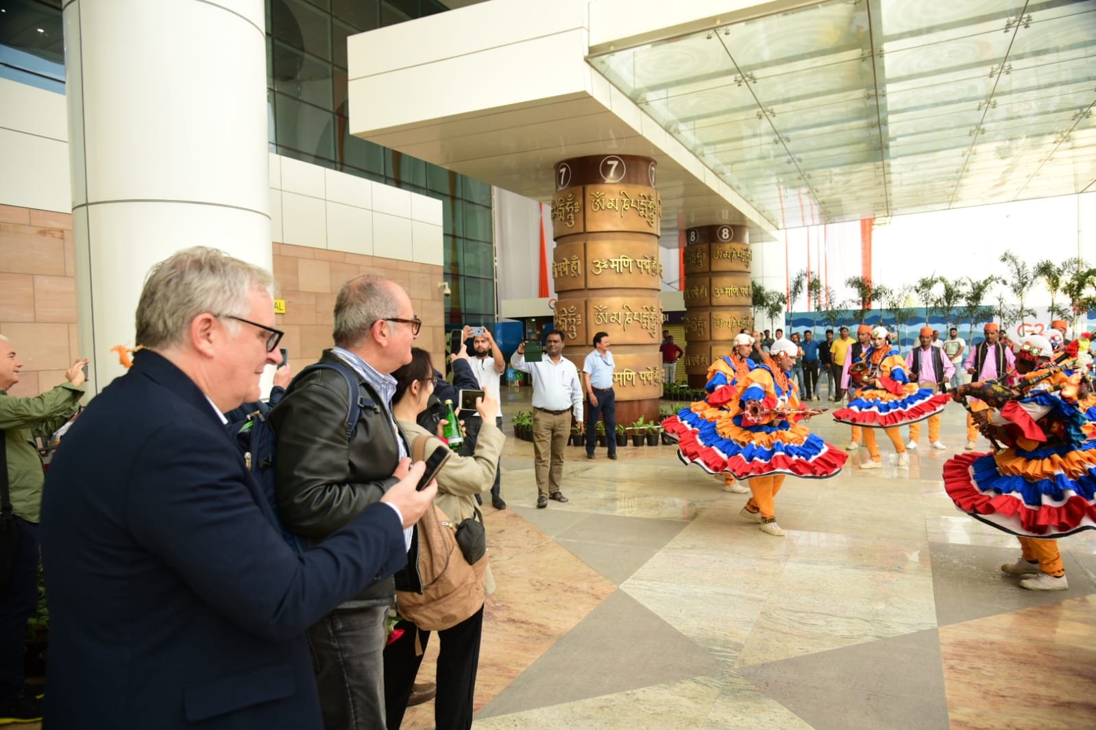 देहरादून। नरेंद्रनगर में 25 से 27 मई को होने जा रही जी-20 बैठक के लिए विदेशी मेहमानों के पहुँचने का सिलसिला शुरू हो गया है। आज सुबह विदेशी डेलिगेट्स का एक ग्रुप जॉलीग्रांट एयरपोर्ट पर पहुँचा जहां उनका पारंपरिक रूप से तिलक व माला पहनाकर स्वागत किया गया। इस दौरान छोलिया नृत्य की पारंपरिक वाद्य यंत्रों पर प्रस्तुति दी रहे कलाकारों को देखकर डेलिगेट्स खुद को नहीं रोक पाए और महिलाओं के साथ ही पुरुष डेलिगेट्स ने भी उत्तराखंड के गीत-संगीत पर कलाकारों संग सुंदर नृत्य किया। सभी मेहमान एयरपोर्ट पर हुई मेहमाननवाजी से काफी खुश एवं अभिभूत नजर आए। इसके बाद इन सभी को नरेंद्रनगर में जहां जी-20 के मुख्य आयोजन हैं वहां ले जाया गया।