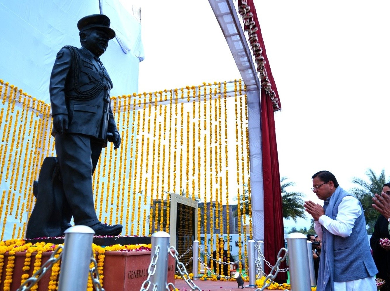 इस अवसर पर मुख्यमंत्री पुष्कर सिंह धामी ने कहा कि स्व. जनरल बिपिन रावत जी की 08 दिसम्बर 2021 को हेलीकॉप्टर दुर्घटना में हुई आकस्मिक मृत्यु से देश को जो अपूरणीय क्षति पहुंची है, उसकी भरपाई संभव नहीं है। उन्होंने कहा कि उत्तराखण्ड एक सैनिक बाहुल्य प्रदेश है तथा भारतीय सेना के गौरवमयी इतिहास में उत्तराखण्ड के वीर सैनिकों का अति विशिष्ट योगदान रहा है। मुख्यमंत्री ने कहा कि उत्तराखण्ड के युवाओं का सेना में शामिल होना प्रमुख प्राथमिकता रही है। सैन्य सेवा हमारे लिये मात्र रोजगार का अवसर नहीं, वरन देश एवं समाज के लिये जीवन समर्पित करने का उत्कृष्ट मौका भी है। स्व.जनरल बिपिन रावत ने भी अपने जीवनकाल में उत्तराखंड की इसी सैन्य परम्परा का निर्वहन किया। मातृभूमि के लिए उनकी चार दशकों की निस्वार्थ सेवा असाधारण वीरता और रणनीतिक कौशल से परिपूर्ण थी।