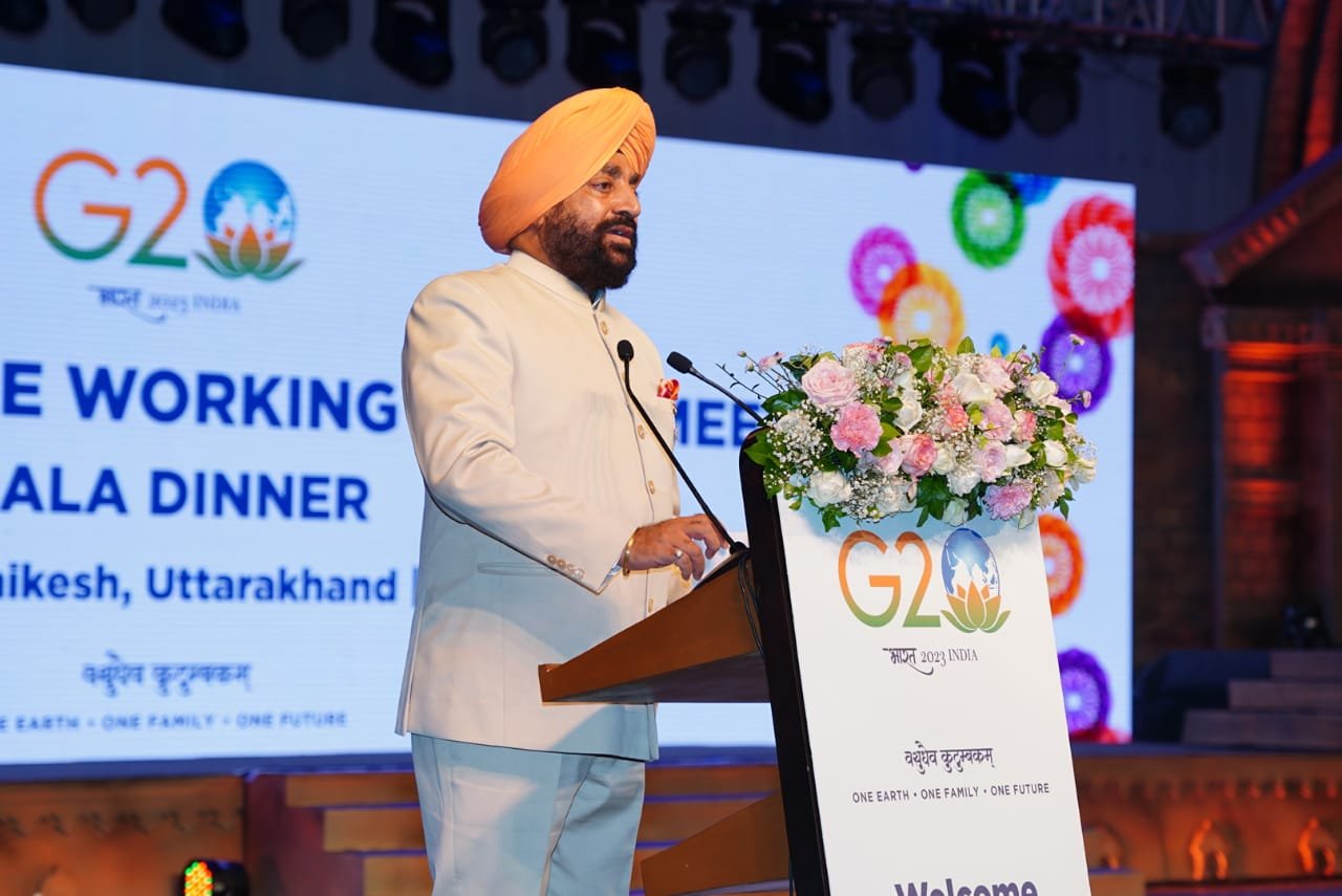 सोमवार को नरेन्द्रनगर ऋषिकेश में जी-20 सम्मेलन की तीसरी बैठक के अवसर पर आयोजित सांस्कृतिक संध्या एवं संवाद कार्यक्रम को संबोधित करते हुए मुख्यमंत्री श्री पुष्कर सिंह धामी ने कहा कि विश्व की सबसे बड़ी पर्वत श्रृंखला हिमालय की गोद में बसा हमारा प्रदेश उत्तराखंड, ’’देवभूमि’’ के रूप में विख्यात है। जहां यह एक ओर हरिद्वार-ऋषिकेश, गंगोत्री-यमुनोत्री, केदारनाथ, बद्रीनाथ, जागेश्वर, पूर्णागिरि जैसे पौराणिक, आध्यात्मिक, धार्मिक एवं सांस्कृतिक केन्द्रों की पवित्र भूमि है, वहीं गंगा, यमुना, अलकनंदा सहित कई महान नदियों का उद्गम स्थल भी है। हमारा राज्य योग, आयुर्वेद, ध्यान का एक वैश्विक केंद्र होने के साथ-साथ प्राचीन भारतीय सभ्यता का प्रतीक भी है।