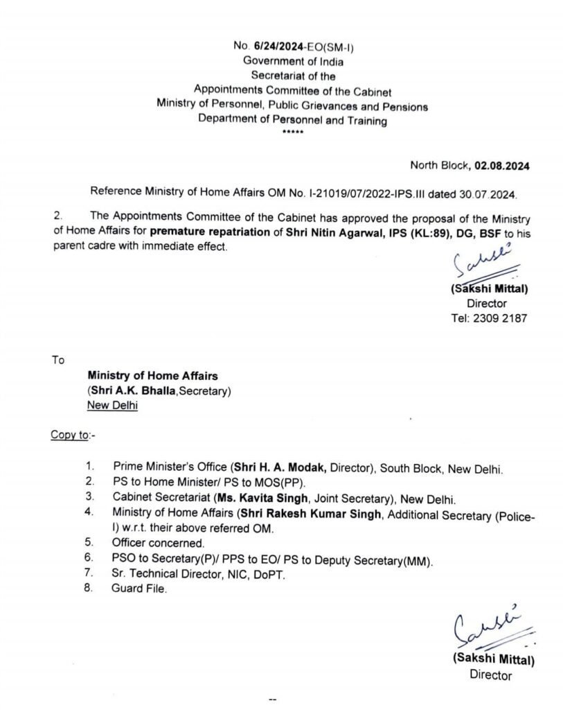 हालांकि, तबादलों का कोई कारण नहीं बताया, लेकिन बल के अधिकारियों ने कहा कि जम्मू में बढ़ती आतंकी घटनाओं के कारण अग्रवाल को केरल कैडर में वापस भेजा गया था। पश्चिमी कमांड के विशेष महानिदेशक के रूप में खुरानिया के अधिकार क्षेत्र में जम्मू-कश्मीर, गुजरात, राजस्थान और पंजाब में भारत-पाक सीमा थी। कैबिनेट की नियुक्ति समिति (एसीसी) द्वारा जारी अलग-अलग आदेशों में कहा गया है कि उन्हें “तत्काल प्रभाव” से “समय से पहले” वापस भेजा जा रहा है।
