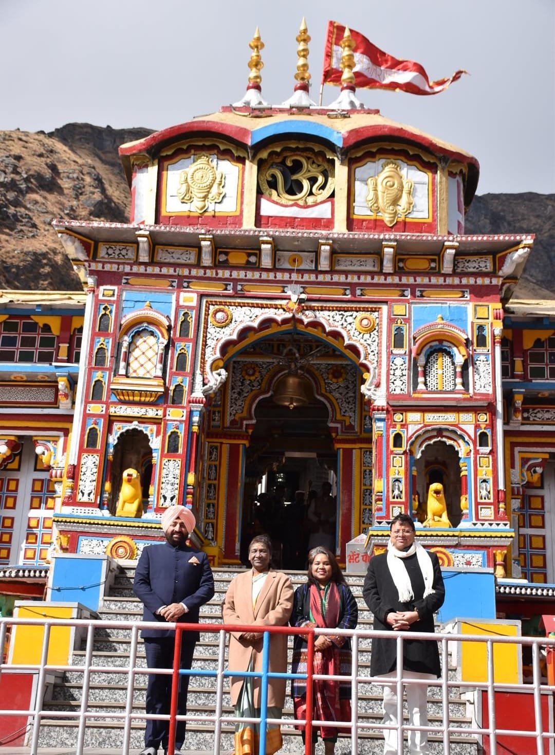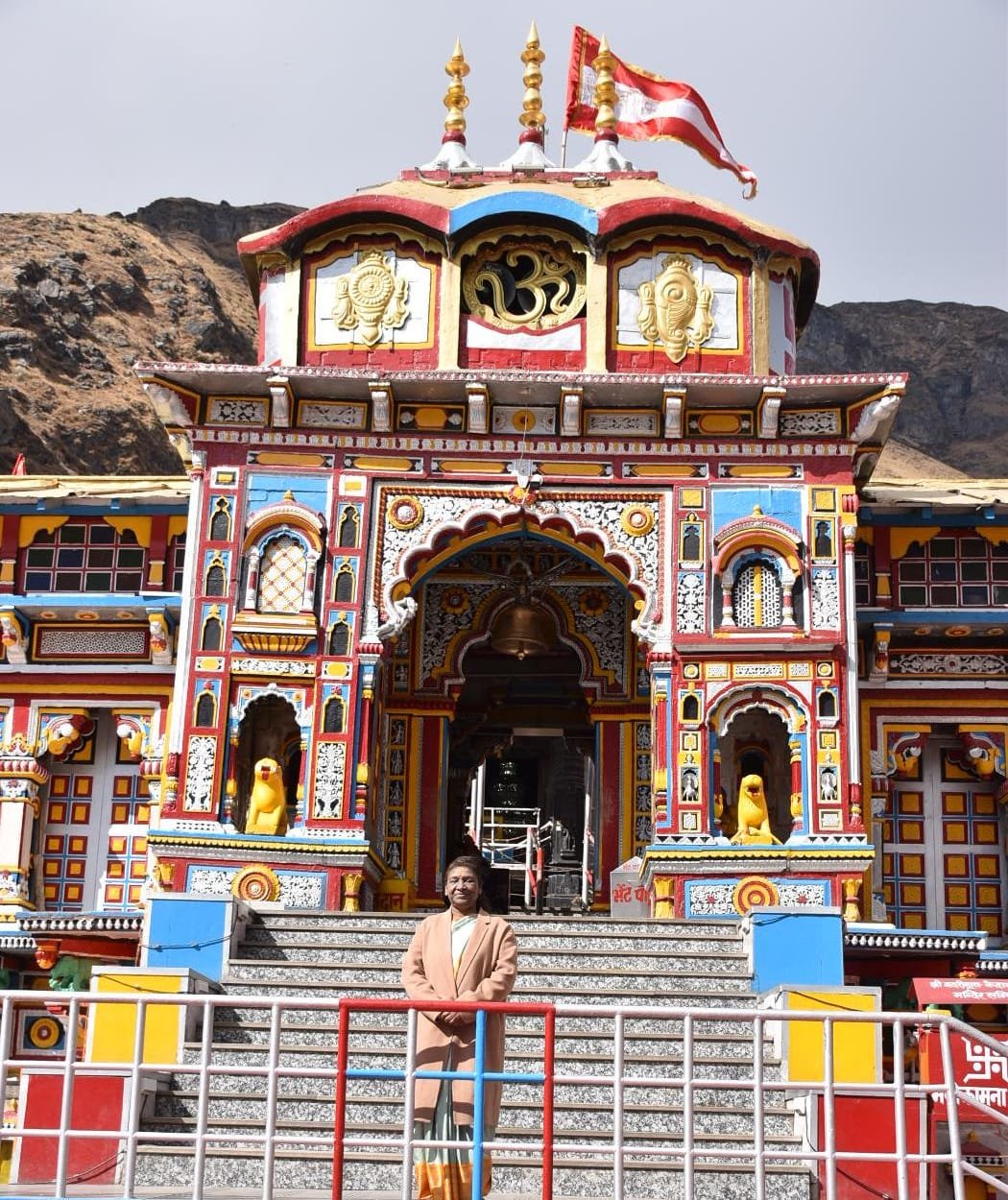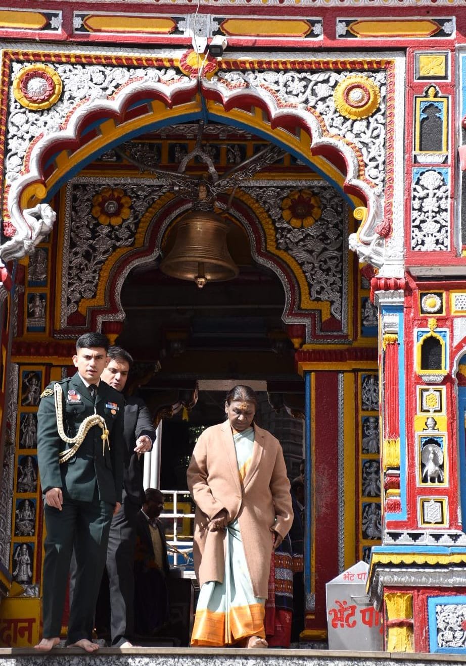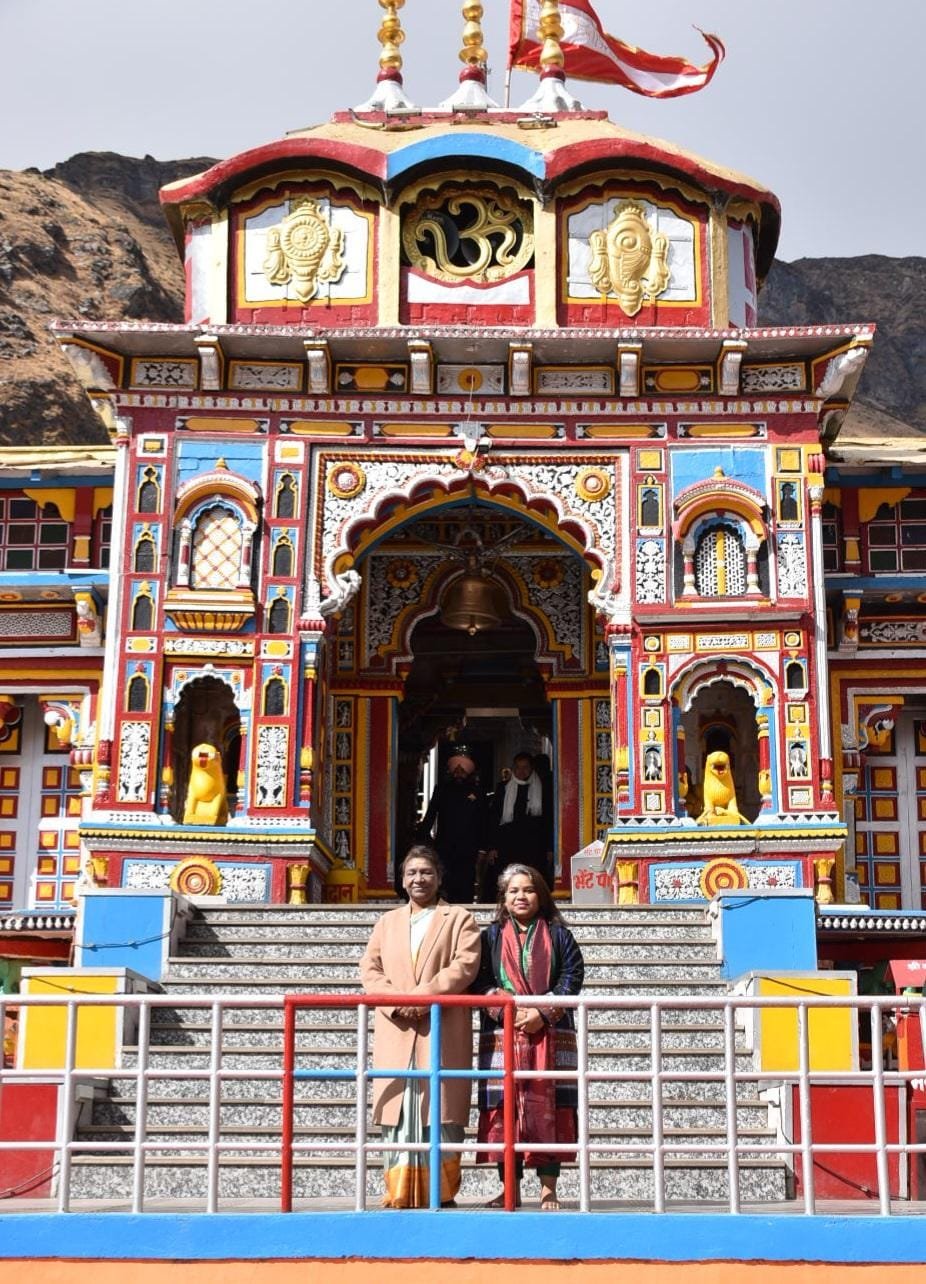 राष्ट्रपति द्रौपदी मुर्मू कड़ी सुरक्षा व्यवस्था की बीच भारतीय वायुसेना के हेलीकॉप्टर से बुधवार को सुबह 10:20 बजे बद्रीनाथ आर्मी हेलीपैड पहुंचे। हेलीपैड पर राज्यपाल लेफ्टिनेंट जनरल (सेनि) गुरमीत सिंह और मुख्यमंत्री पुष्कर सिंह धामी, बद्री केदार मंदिर समिति के अध्यक्ष अजेन्द्र अजय, अन्य जनप्रतिनिधियों सहित जिलाधिकारी हिमांशु खुराना एवं पुलिस अधीक्षक रेखा यादव ने राष्ट्रपति का स्वागत किया। यहां से राष्ट्रपति काफिले के साथ मंदिर पहुंची और मंदिर में बद्री विशाल की वेद पाठ एवं विशेष पूजा की। बद्रीनाथ के मुख्य पुजारी रावल ईश्वर प्रसाद नंबूदरी एवं तीर्थ पुरोहितों ने वैदिक मंत्रोच्चार के साथ विधिवत पूजा संपन्न की। मंदिर समिति के अध्यक्ष अजेन्द्र अजय, उपाध्यक्ष किशोर पंवार एवं अन्य पदाधिकारियों ने राष्ट्रपति को बद्री विशाल का प्रसाद एवं अंग वस्त्र भेंट किया।