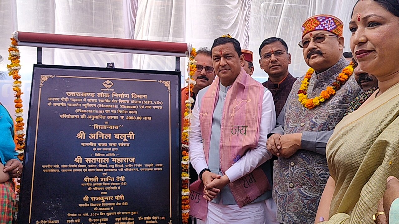 इसके पश्चात रामलीला मैदान में मुख्य कार्यक्रम स्थल पर राज्यसभा सांसद अनिल बलूनी ने अपने संबोधन में कहा कि इस परियोजना के आकार लेने के पश्चात संपूर्ण गढ़वाल क्षेत्र में पर्यटन गतिविधियों को बढ़ावा मिलेगा। खगोल प्रेमियों के लिए यह आकर्षक स्थल बनकर उभरेगा। विद्यार्थियों के लिए भी जिज्ञासा का केंद्र बनेगा तथा इन सबसे इस क्षेत्र की आर्थिकी में बड़ा सकारात्मक बदलाव आयेगा। उन्होंने कहा कि परियोजना को पूर्ण करने के लिए किसी भी प्रकार से धनराशि की कमी नहीं होने दी जायेगी।