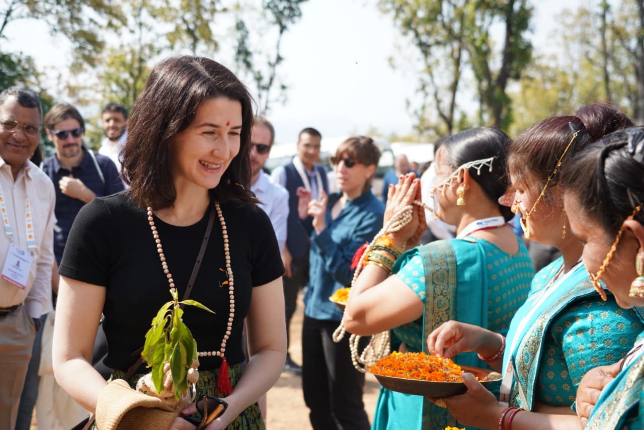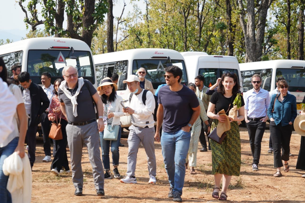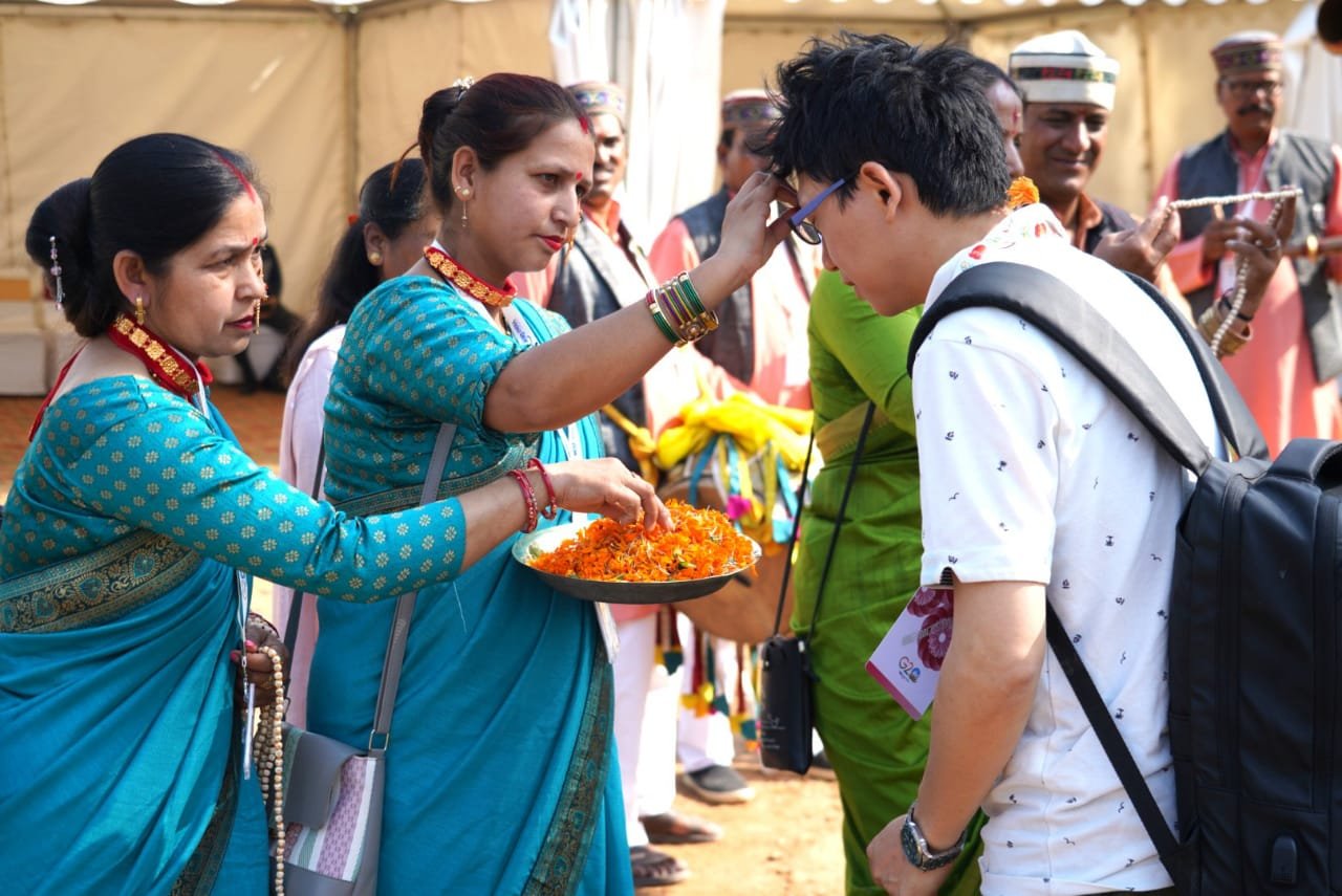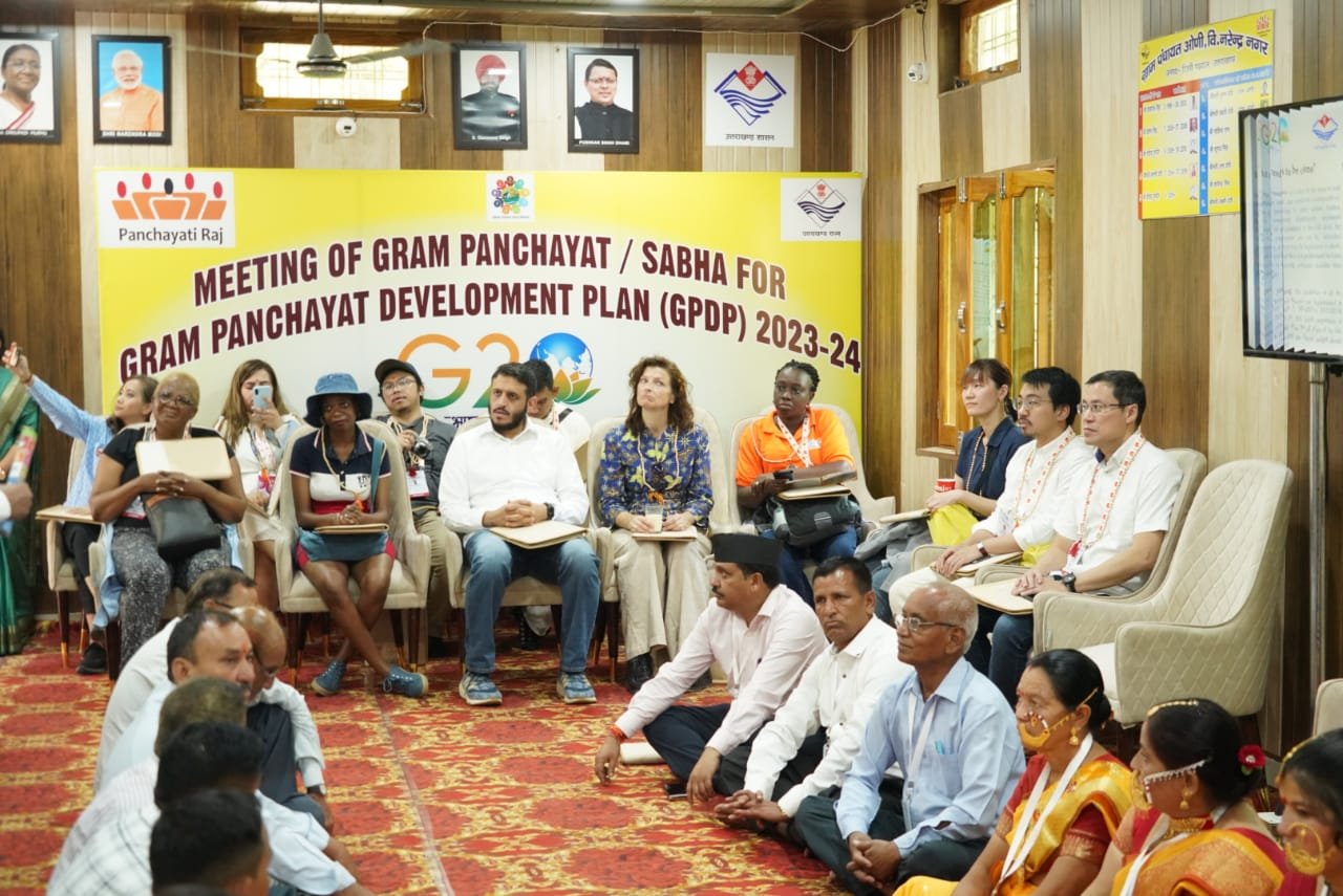 नरेन्द्रनगर : उत्तराखंड में दूसरी जी-20 एंटी करप्शन वर्किंग ग्रुप मीटिंग के नरेंद्र नगर टिहरी में समापन के पश्चात रविवार को 20 सदस्य देशों के 20 प्रतिनिधियों ने ऑणी गांव का भ्रमण किया । ओणी गांव में विदेशी प्रतिनिधियों का स्वागत उत्तराखंड की पारंपरिक शैली में किया गया । ओंणी गांव आगमन पर स्वयं सहायता समूह की महिलाओं एवं वाद्य यंत्र के कलाकारों द्वारा आत्मीयता से डेलीगेट्स का टीका लगाकर, तुलसी की माला पहनाकर तथा ढोल, दमाऊ, माशकबाज, रणसिंघा की प्रस्तुति देकर जोरदार स्वागत किया गया। औणी गांव में विदेशी प्रतिनिधियों ने गांव की आंगनबाड़ी केन्द्र, नरेंद्र नगर फॉरेस्ट डिविजन शिवपुरी रेंज द्वारा स्थापित इंटरप्रिटेशन सेंटर, पंचायत भवन, बर्तन बैंक, ग्रामीण बचत बैंक शासकीय प्राथमिक विद्यालय, दुग्ध उत्पादन केंद्र, पॉलीहाउस तथा मिलेट सेंटर का भ्रमण किया । इस दौरान विदेशी मेहमान उत्तराखंड की लोक संस्कृति, ग्रामीण परिवेश, जीवन शैली, पारंपरिक लोक कला, जैविक खेती आदि से भी रूबरू हुए।