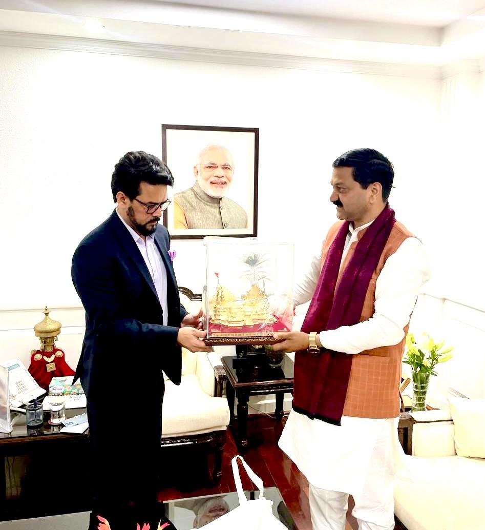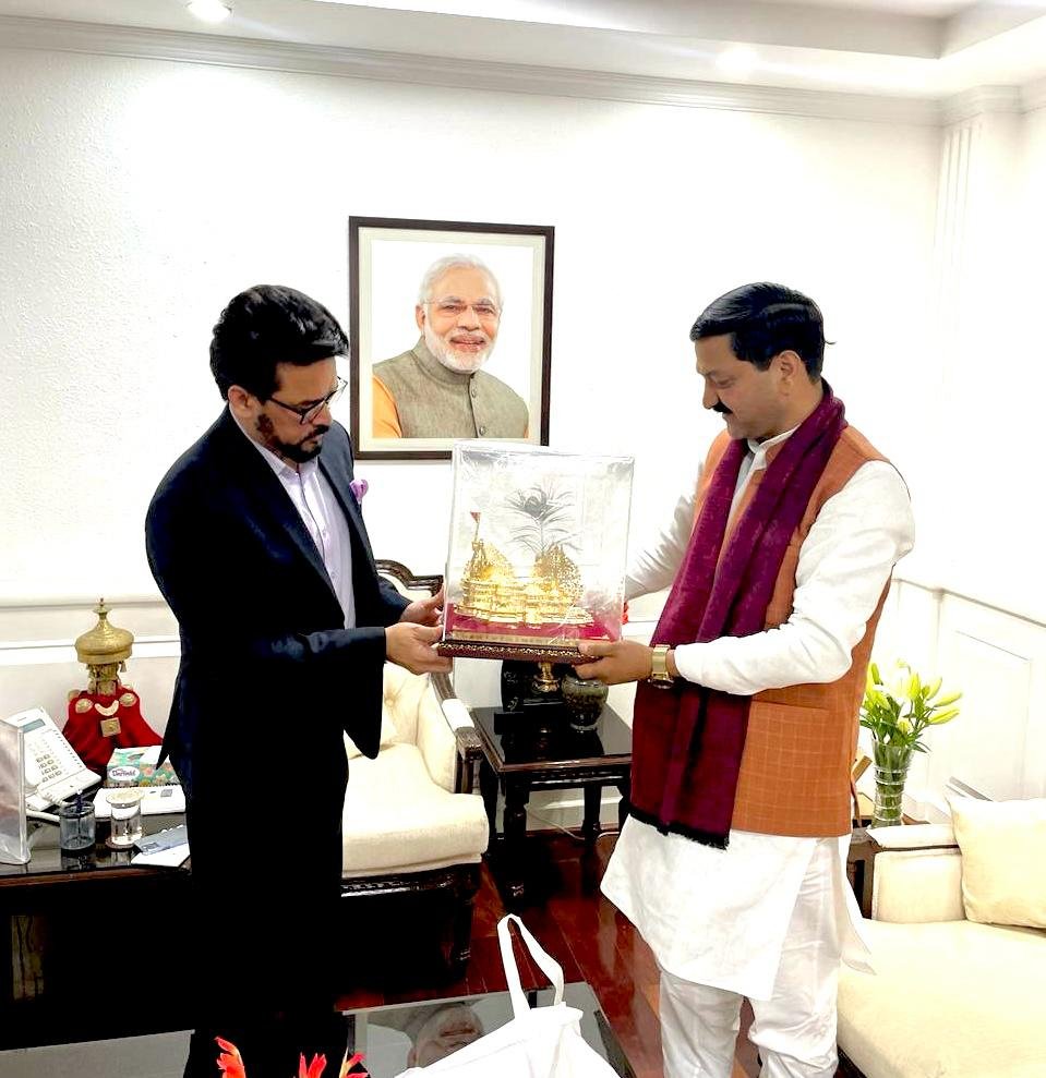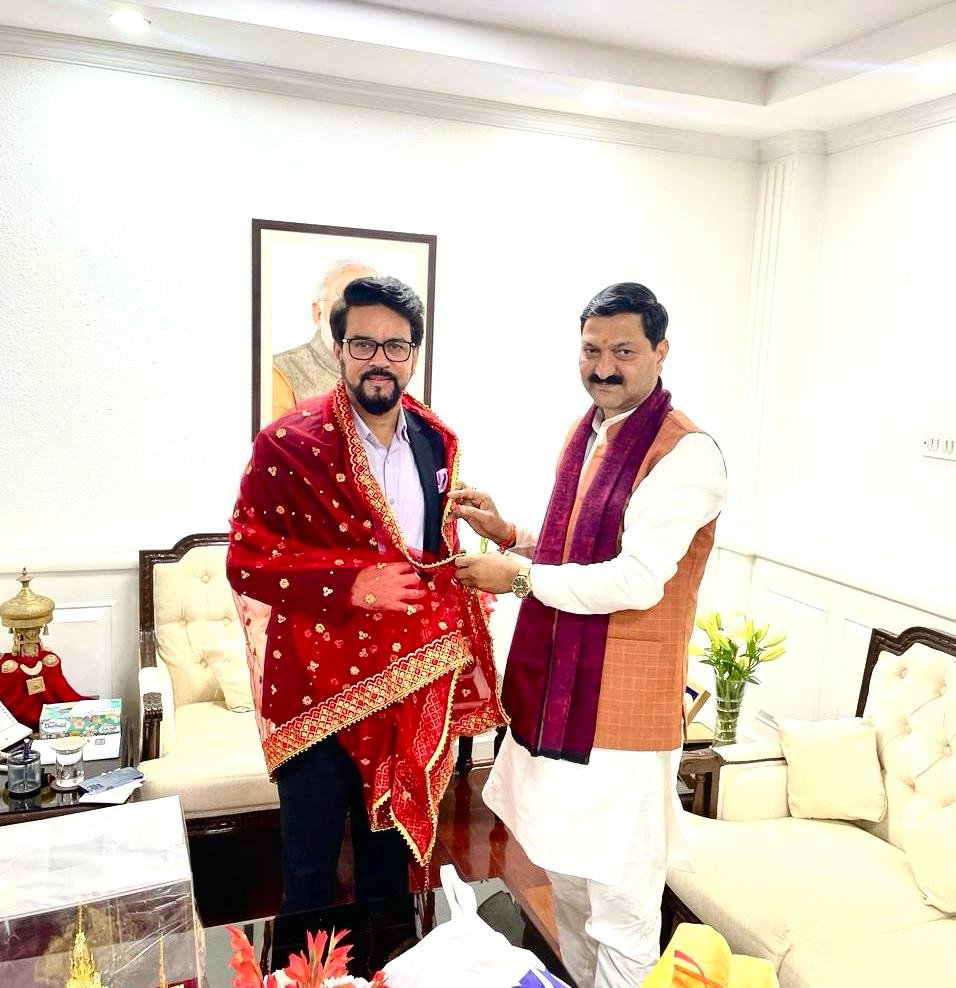 देहरादून। श्री बदरीनाथ-केदारनाथ मंदिर समिति (बीकेटीसी) के अध्यक्ष अजेंद्र अजय ने नई दिल्ली में केंद्रीय सूचना व प्रसारण, युवा मामलों और खेल मंत्री अनुराग सिंह ठाकुर से भेंट की। केंद्रीय मंत्री ठाकुर से भेंट के दौरान बीकेटीसी अध्यक्ष अजेंद्र ने कहा कि कोविड काल में चारधाम यात्रा पूरी तरह से बाधित हो चुकी थी। मगर प्रधानमंत्री नरेंद्र मोदी की प्रेरणा और मुख्यमंत्री पुष्कर सिंह धामी के कुशल मार्गदर्शन में विगत दो वर्षों के दौरान चारधाम यात्रा ने नये कीर्तिमान स्थापित किए हैं। अजेंद्र ने प्रधानमंत्री जी के मार्गदर्शन में केदारनाथ व बदरीनाथ धामों में मास्टर प्लान के तहत चल रहे निर्माण कार्यों की भी केंद्रीय मंत्री से चर्चा की। उन्होंने केंद्रीय मंत्री को कपाट खुलने पर केदारनाथ व बदरीनाथ धाम की यात्रा का आमंत्रण भी दिया।