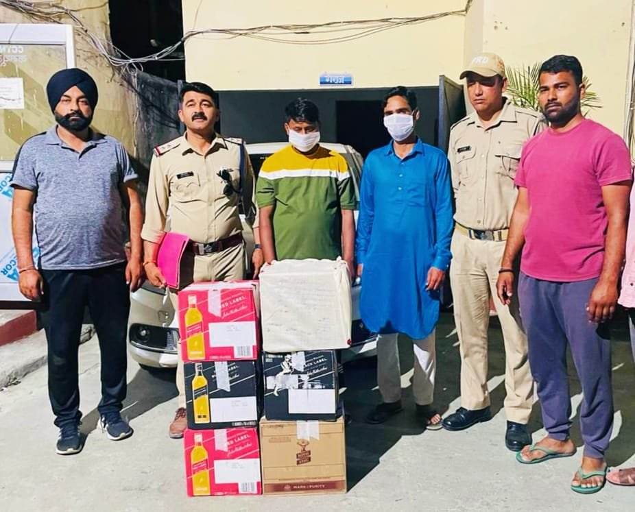 थानाध्यक्ष बनबसा लक्ष्मण सिह जगवाण तथा एस.ओ.जी प्रभारी मनीष खत्री के कुशल नेतृत्व में 29 मार्च 2024 को थाना बनबसा के कैनाल स्कूल मोड़ भारत-नेपाल मार्ग पर थाना बनबसा पुलिस एंव SOG टीम की संयुक्त चैकिंग के दौरान अभियुक्तगण 1-नजमूल हसन पुत्र तुल्लन, निवासी उमरू खुर्द, इस्लाम नगर, खटीमा, उधम सिंह नगर, उम्र 28 वर्ष तथा 2-रियाज अहमद उर्फ़ सानू पुत्र ईशाक अहमद, निवासी उपरोक्त उम्र 32 वर्ष को मारूती स्विफ्ट डिजायर रजि0 नं0 UK 17 D 4452 के साथ चैकिग हेतू रोका गया तो चैकिंग करने पर मारूती स्विफ्ट डिजायर कार की डिग्गी सें दोनो अभियुक्तगण सें 05 पेटी अवैध ब्रान्डेड अंग्रेजी शराब क्रमशः 02 पेटी जोनीवाकर ब्लैक लेवल ( 24 बोतल),02 पेटी जोनीवाकर रेड लेवल (24 बोतल) 01 पेटी रोयल स्टेग ( 12 बोतल) बरामद होने पर दोनों को गिरफ्तार किया गया । अभियुक्तगणों उपरोक्त के विरूद्ध थाना बनबसा में अन्तर्गत धारा 60/72 संयुक्त प्रान्त आबकारी अधिनियम एक्ट पंजीकृत किया गया है ।