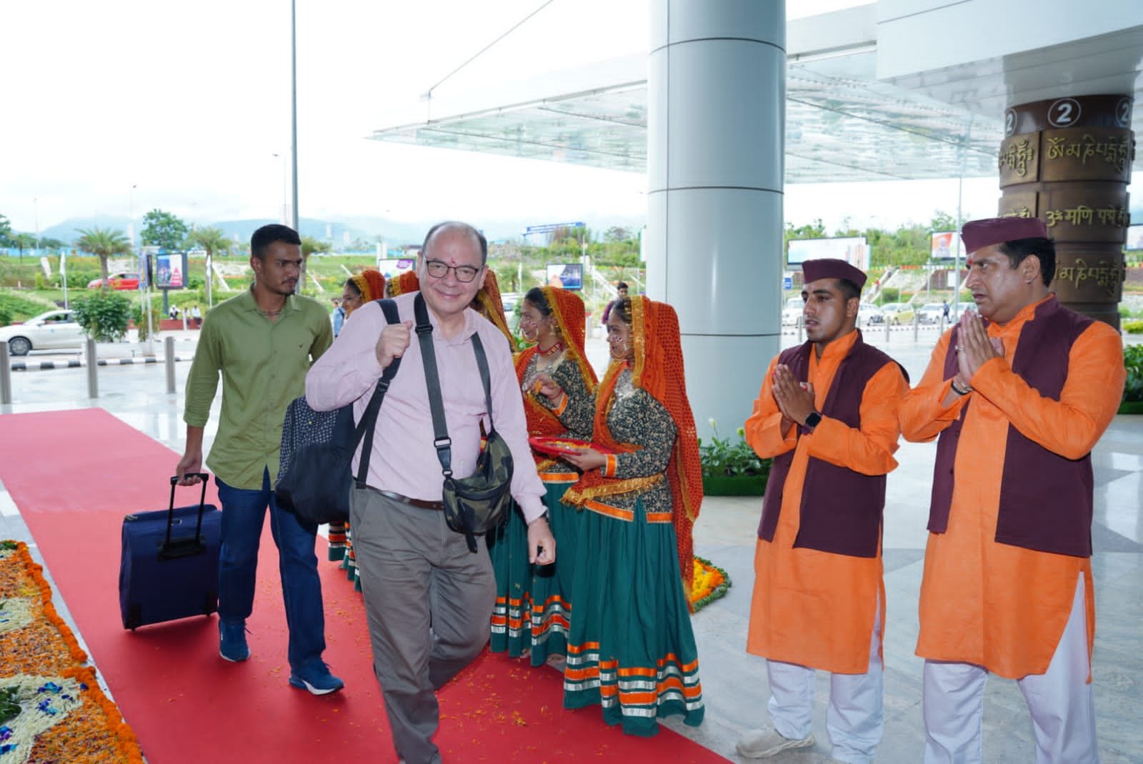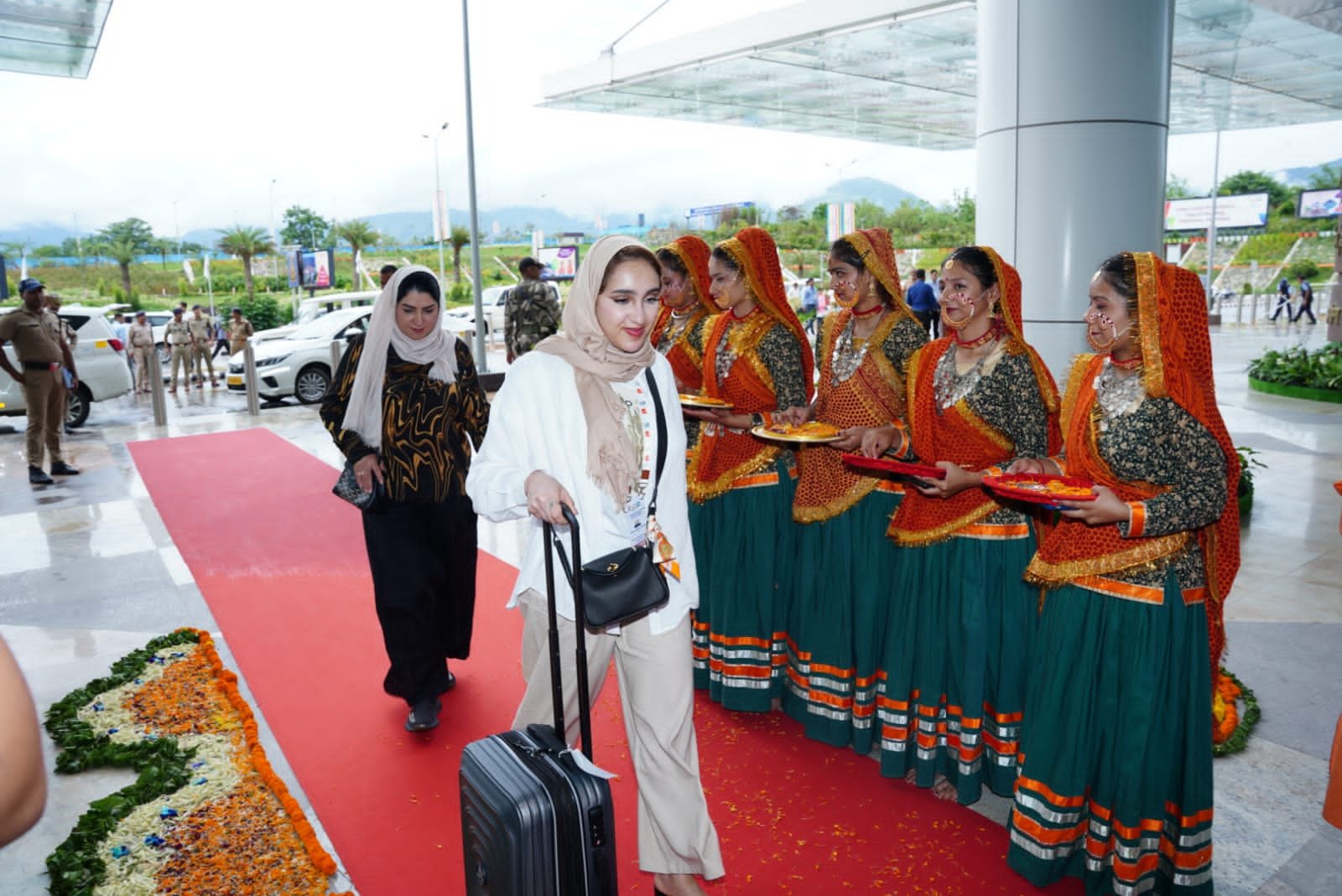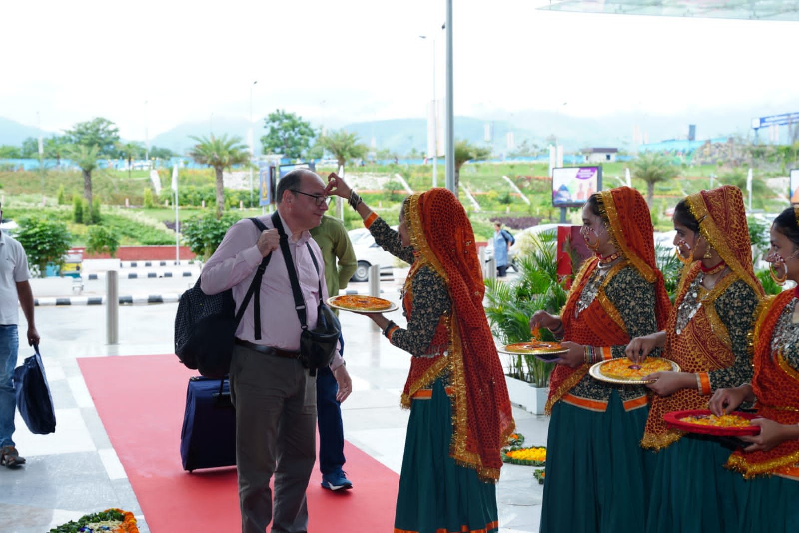 जी-20 सम्मेलन में प्रतिभाग करने आए विदेशी मेहमानों को जोलीग्रांट एयरपोर्ट पर स्थानीय लोक संस्कृति और परम्पराओं के साथ तिलक लगाकर एवं पुष्पवर्षा कर किया विदा
