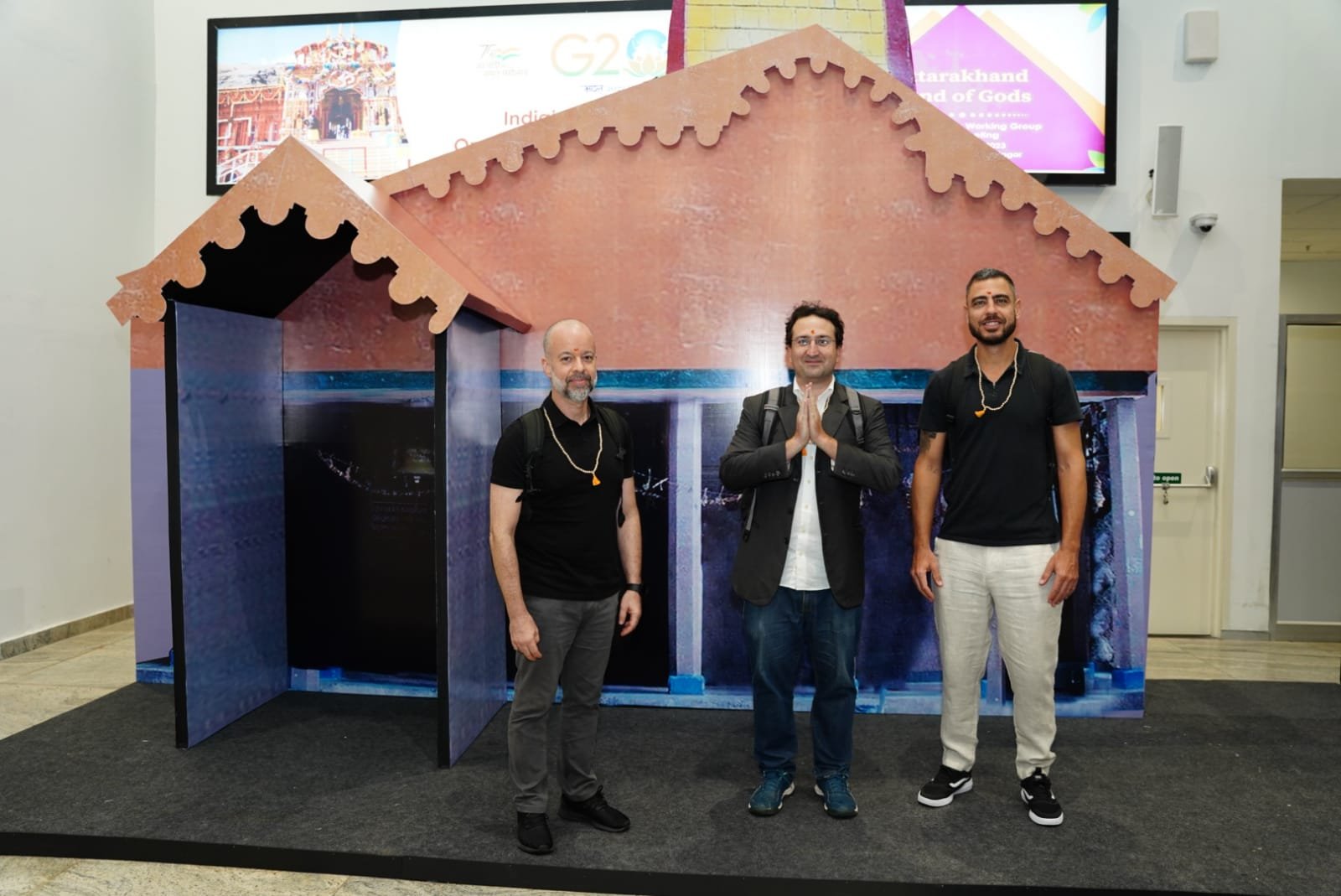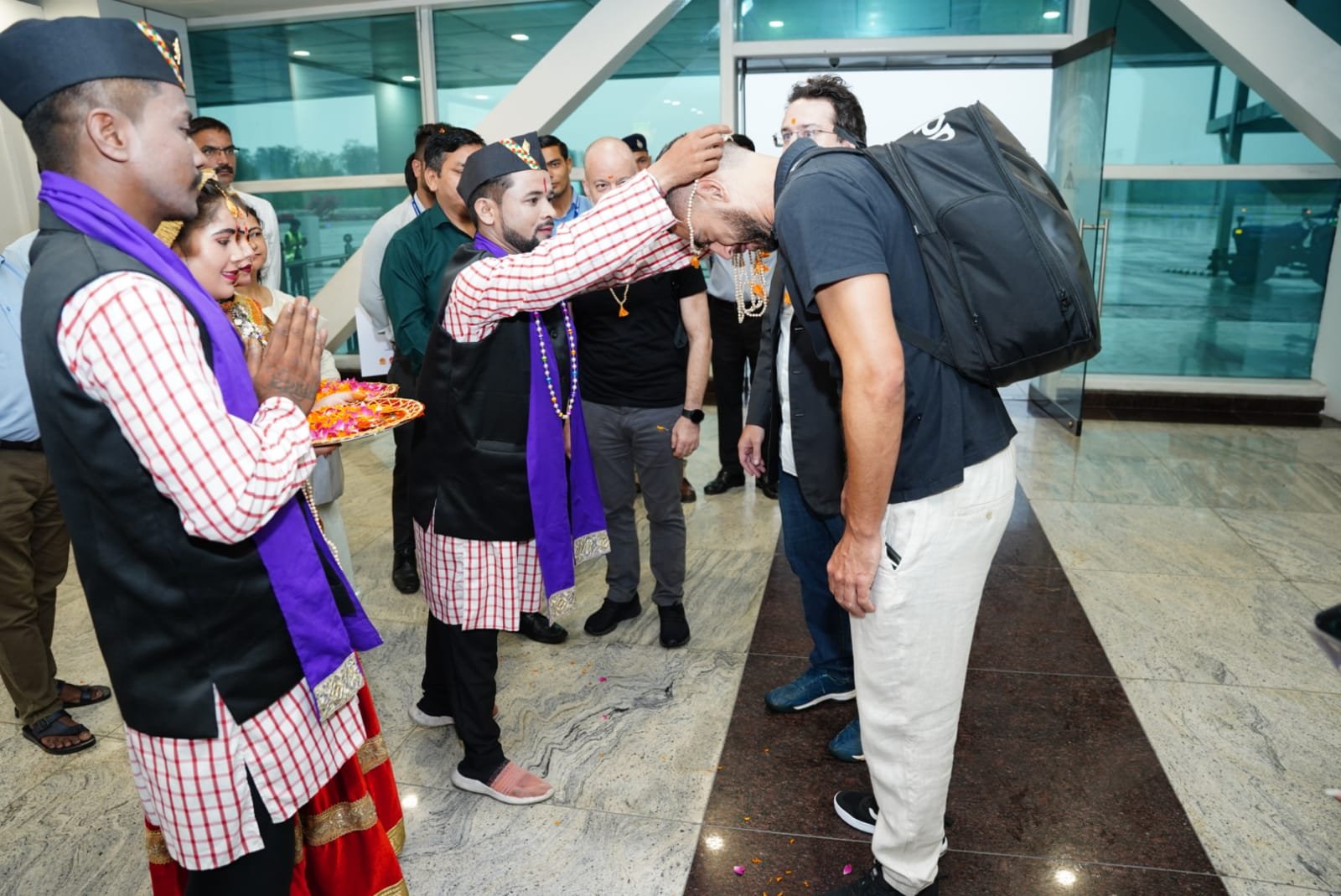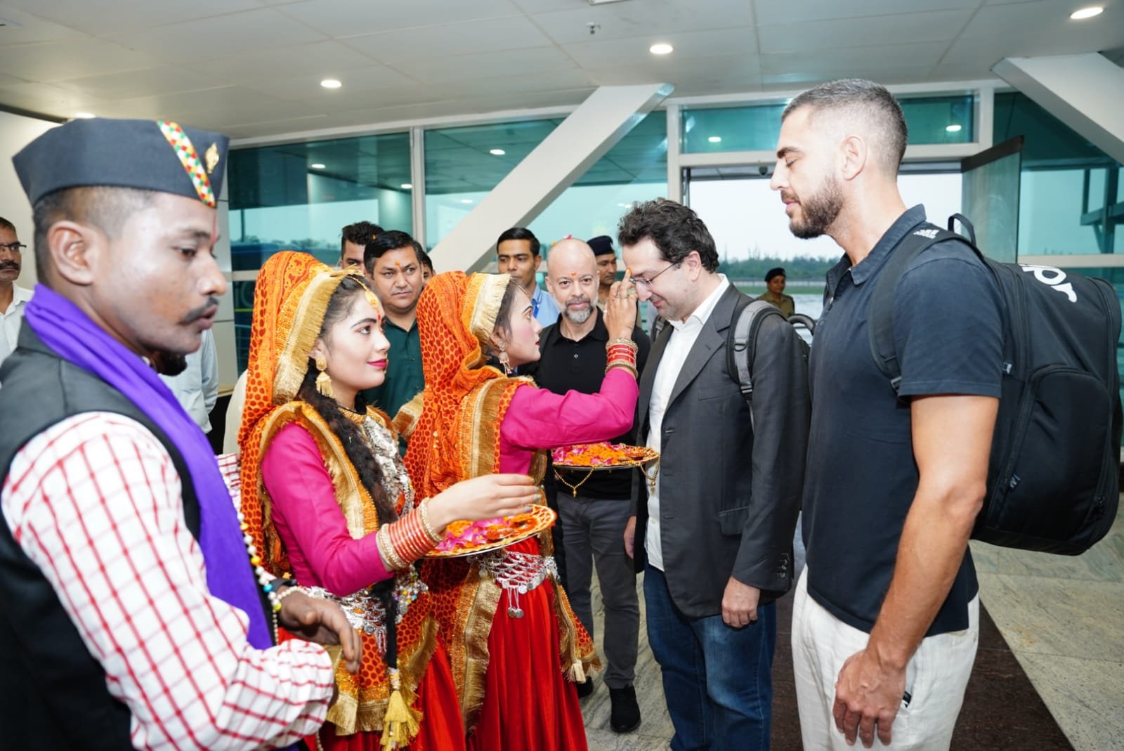 देहरादून : जी-20 सम्मेलन में प्रतिभाग करने पहुंचे प्रतिनिधिमंडल के सदस्यों का स्थानीय परंपराओं के साथ किया गया भव्य स्वागत।आज जौलीग्रांट एयरपोर्ट पर प्रातः की फ्लाईट से जी 20 सम्मेलन में प्रतिभाग करने ब्राजील से तीन प्रतिनिधिमंडल के सदस्य पहुंचे जिनका स्थानीय संस्कृति एवं लोक परंपराओं से ढोल दमाऊ के साथ भव्य स्वागत किया गया। इस अवसर पर उप जिलाधिकारी डोईवाला शैलेंद्र सिंह नेगी, उप जिलाधिकारी टिहरी शालिनी पंत, तहसीलदार सोहन सिंह रांगड़, सहित स्थानीय कलाकार जिला प्रशासन एवं पुलिस के अधिकारी कार्मिक उपस्थित रहे।