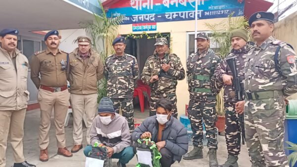 उक्त के क्रम में 20 जनवरी 2024 को थाना बनबसा क्षेत्रान्तर्गत शारदा नदी के तटबन्ध के निकट पिल्लर नं0 805 से 200 मीटर पहले सड़क पर प्रभारी शारदा बैराज ,थाना बनबसा पुलिस टीम तथा SSB बनबसा टीम की संयुक्त चैकिंग के दौरान अभियुक्त 01-पूरन बूढ़ा पुत्र भवी बूढ़ा उम्र लगभग 28 वर्ष निवासी गा0वि0स0 लेकगॉउ जिला बंजाग कंचनपुर वार्ड नं0 07 न0पा0 शुक्लाफांटा थाना चैनपुर नेपाल राष्ट्र के कब्जे से 03 किलो 465 ग्राम अवैध चरस तथा अभियुक्त 02-रविन्द्र बूढ़ा पुत्र फिट्टू बूढ़ा उम्र लगभग 29 वर्ष निवासी गा0वि0स0 लेकगॉउ जिला बंजाग कंचनपुर वार्ड नं0 07 न0पा0 शुक्लाफांटा थाना चैनपुर नेपाल राष्ट्र के कब्जे से 03 किलो 100 ग्राम अवैध चरस बरामद कर गिरफ्तार किया गया। अभियुक्तो उपरोक्त के विरूद्ध थाना बनबसा में मु0अ0सं0- 09/24 अन्तर्गत धारा 8/20 एनडीपीएस एक्ट पंजीकृत किया गया है