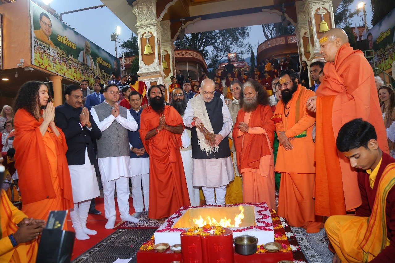 ऋषिकेश : केंद्रीय गृह एवं सहकारिता मंत्री अमित शाह एवं मुख्यमंत्री पुष्कर सिंह धामी शनिवार को देहरादून में आयोजित उत्तराखंड ग्लोबल इन्वेस्टर्स समिट में प्रतिभाग करने के पश्चात ऋषिकेश स्थित परमार्थ निकेतन पहुंचे। परमार्थ निकेतन के परमाध्यक्ष स्वामी चिदानंद मुनि ने उनका स्वागत किया। केंद्रीय गृहमंत्री अमित शाह एवं मुख्यमंत्री गंगा पूजन एवं गंगा आरती में शामिल हुए तथा मां गंगा का आशीर्वाद प्राप्त कर देश व प्रदेश की खुशहाली की कामना की। इस अवसर पर कैबिनेट मंत्री प्रेमचन्द अग्रवाल, सांसद एवं पूर्व मुख्यमंत्री डॉ. रमेश पोखरियाल निशंक, सांसद अनिल बलूनी, पूर्व मुख्यमंत्री त्रिवेन्द्र सिंह रावत, भाजपा प्रदेश अध्यक्ष महेन्द्र भट्ट, योग गुरू बाबा रामदेव, अखाडा परिषद के अध्यक्ष महंत रवीन्द्र पुरी, स्वामी कैलाशानन्द, स्वामी ईश्वरानन्द एंव अन्य संतगण आदि उपस्थित थे।
