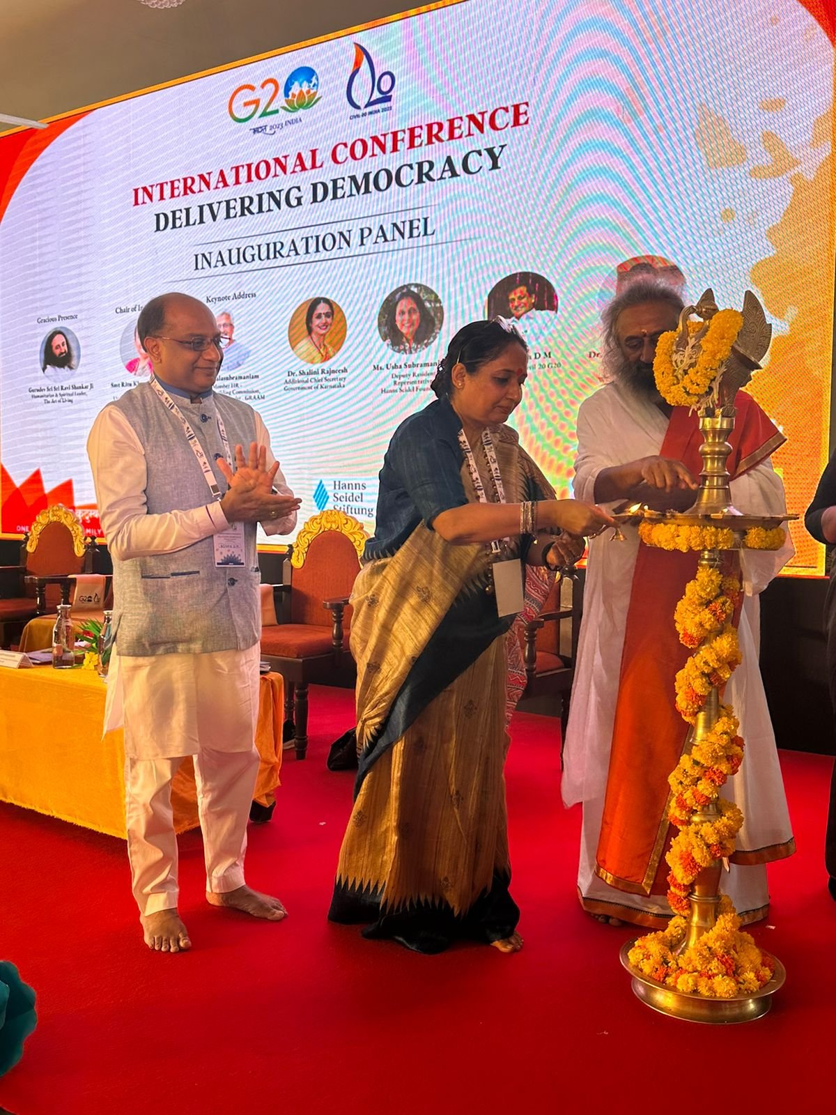बैंगलोर : उत्तराखंड विधानसभा अध्यक्ष ऋतु खंडूडी भूषण ने बैंगलोर में आयोजित जी 20 के समूह सी 20 के अंतर्गत अंतर्राष्ट्रीय सम्मेलन में प्रतिभाग किया। कर्नाटका की राजधानी बैंगलोर में जी20 के समूह सी20 के अंतर्राष्ट्रीय सम्मेलन आयोजित किया गया जिसमे बतौर मुख्य अतिथि ऋतु खंडूरी भूषण और आध्यात्मिक गुरु श्री श्री रविशंकर ने विधिवत दीप प्रज्वलित कर सम्मलेन का शुभारंभ किया।उत्तराखंड विधानसभा अध्यक्ष ऋतु खंडूरी भूषण इन दिनों बैंगलोर में आयोजित अंतर्राष्ट्रीय सम्मेलन में प्रतिभाग कर रही है। उन्होंने सी20 वर्किंग ग्रुप “डिलिवरिंग डेमोक्रेसी ” पूर्वव्यापी और संभावना के विषय पर अपना संबोधन दिया।