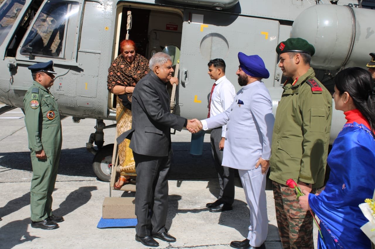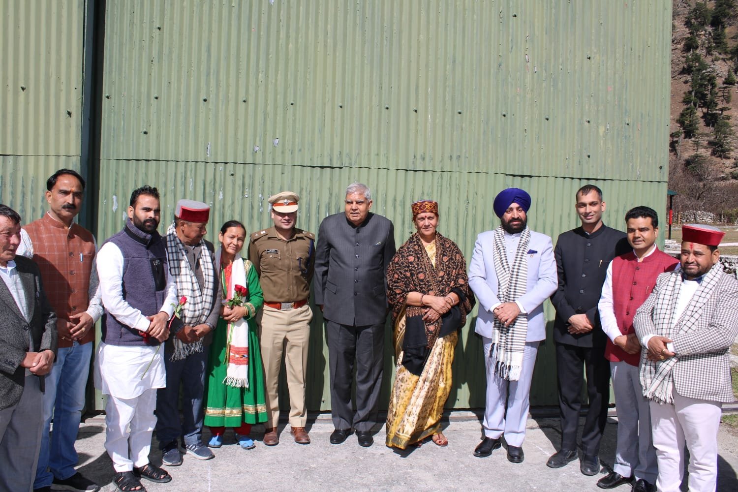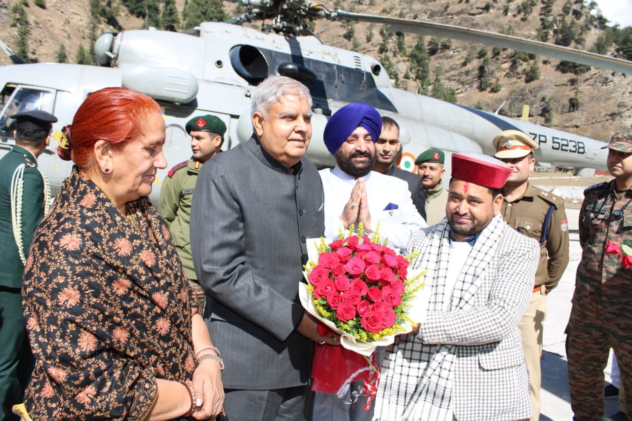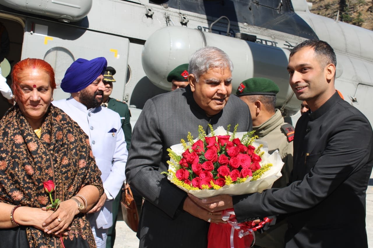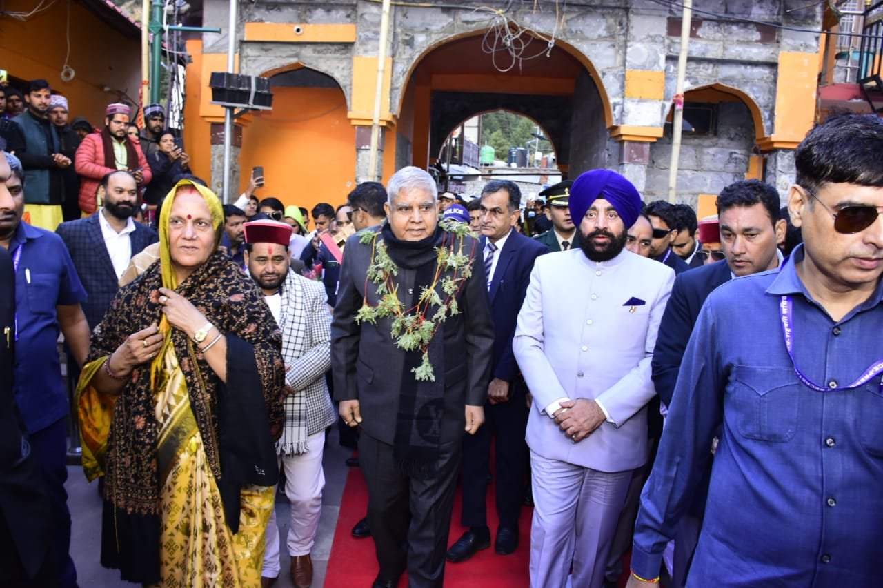 गंगोत्री / उत्तरकाशी (कीर्ति निधि सजवाण): उप राष्ट्रपति जगदीप धनखड़ ने सपत्नीक गंगोत्री धाम के दर्शन कर गंगोत्री मंदिर एवं गंगा तट पर पूजा अर्चना कर राष्ट्र के उत्थान एवं लोक कल्याण की कामना की। इस दौरान राज्यपाल ले.जन. (से.नि.) गुरमीत सिंह भी साथ रहे। उप राष्ट्रपति जगदीप धनखड़ और उनकी पत्नी डॉ. सुदेश धनखड़ आज दोपहर बाद वायुसेना के हेलिकॉप्टर से हर्षिल हेलीपैड पहुँचे। जहाँ पर राज्यपाल ले.जन. (से.नि.) गुरमीत सिंह, गंगोत्री क्षेत्र के विधायक सुरेश चौहान, जिलाधिकारी अभिषेक रुहेला, पुलिस अधीक्षक अर्पण यदुवंशी,सेना की 11 जेकेलाई के कर्नल सनी जुनेजा, जिला पंचायत अध्यक्ष दीपक बिजल्वाण, अपर जिलाधिकारी तीर्थ पाल सिंह, उपजिलाधिकारी भटवाड़ी चतर सिंह चौहान, भाजपा जिलाध्यक्ष सत्येंद्र सिंह राणा,उपाध्यक्ष हरीश डंगवाल, भाजपा अनुसूचित जनजाति प्रकोष्ठ के प्रदेश उपाध्यक्ष खुशहाल सिंह नेगी एवं जिलाध्यक्ष भगवान सिंह राणा, भाजपा मंडल अध्यक्ष जितेंद्र सिंह तथा बगोरी की प्रधान सरिता रावत आदि ने उप राष्ट्रपति का स्वागत किया।