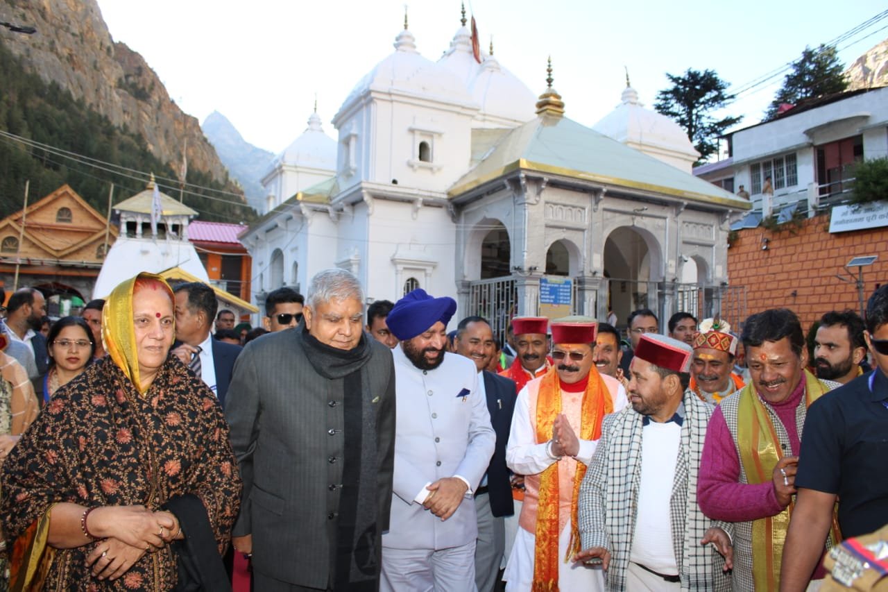 उप-राष्ट्रपति अपराह्न 2 बजे सड़क मार्ग से गंगोत्री धाम पंहुचे। गंगोत्री आगमन पर तीर्थपुरोहितों एवं मंदिर समिति के पदाधिकारियों के साथ ही मुख्य विकास अधिकारी गौरव कुमार एवं अन्य प्रशासनिक अधिकारियों तथा स्थानीय निवासियों ने उप राष्ट्रपति का परंपरागत तरीके से स्वागत किया। उप राष्ट्रपति धनखड़ एवं उनकी पत्नी ने गंगोत्री मंदिर के दर्शन कर विशेष पूजन और अभिषेक कर गंगा जी का आशीर्वाद प्राप्त किया। इसी के साथ उन्होंने राज्यपाल के साथ गंगा तट पर जाकर पूजन कर देश की प्रगति व लोक मंगल की कामना की। उपराष्ट्रपति गंगोत्री हिमालय क्षेत्र के मनोरम प्राकृतिक सौंदर्य और देवनदी गंगा की अविरल और निर्मल धारा के दर्शन से काफी अभिभूत दिखे। इस दौरान राज्यपाल ने उपराष्ट्रपति को इस सीमांत क्षेत्र की विशिष्टताओं से भी अवगत कराया।