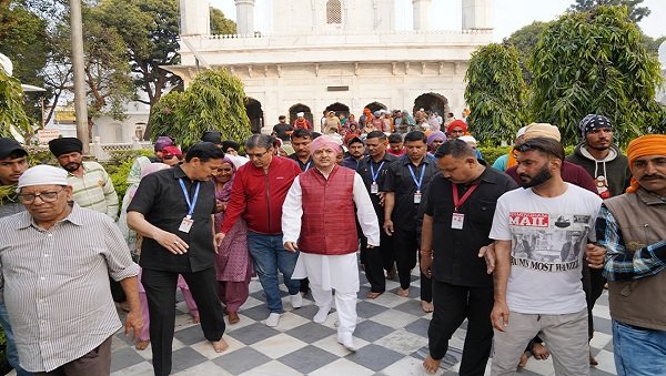 देहरादून। पंजाब के विभिन्न हिस्सों से 150 सदस्यीय पैदल संगत का जत्था शुक्रवार शाम को श्री दरबार साहिब पहुंचा। शाम 5:00 बजे श्री दरबार साहिब देहरादून के दर्शनी गेट पहुंचते ही पैदल संगत का पुष्प वर्षा व ढोल नगाड़ों की थाप के साथ दूनवासियों व श्री दरबार साहिब श्री झंडा जी मेला आयोजन समिति ने जोरदार स्वागत किया। दर्शनी गेट व श्री दरबार साहिब परिसर में श्री दरबार साहिब के सज्जादानशीन श्रीमहंत देवेन्द्र दास जी महाराज की अगुवाई में पुष्प वर्षा के बीच संगत का जोरदार स्वागत हुआ। श्री महाराज जी ने संगत को दर्शन दिए व आशीर्वाद दिया। श्री दरबार साहिब परिसर व निकटवर्ती समूचा क्षेत्र श्री गुरु राम राय जी महाराज के गगनभेदी जयकारों से गूंज उठा।