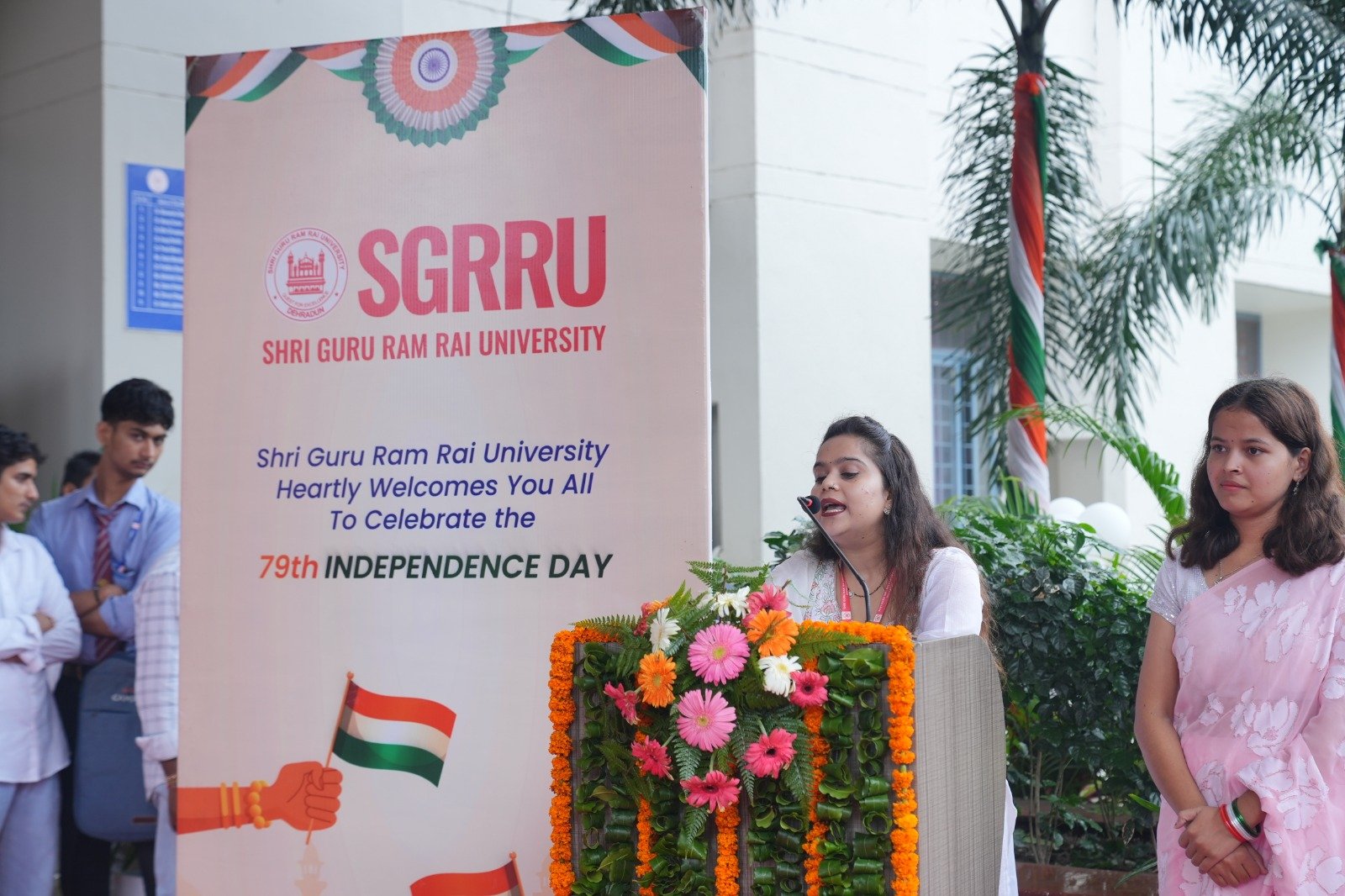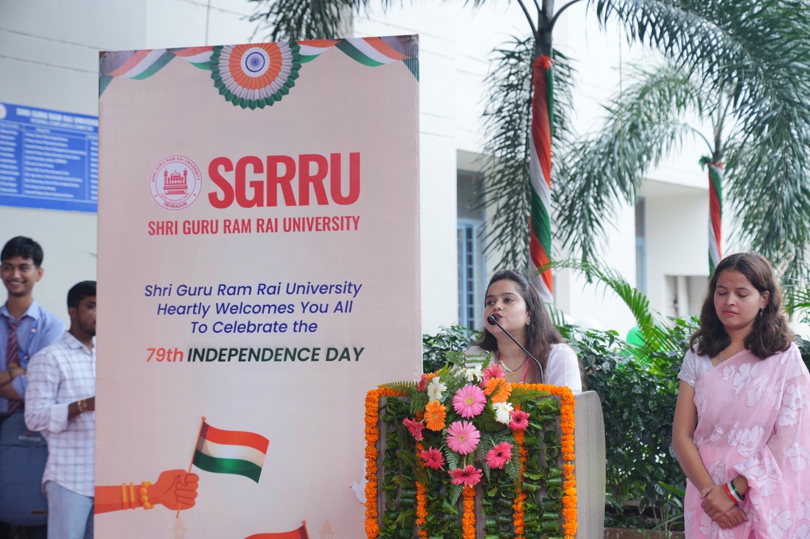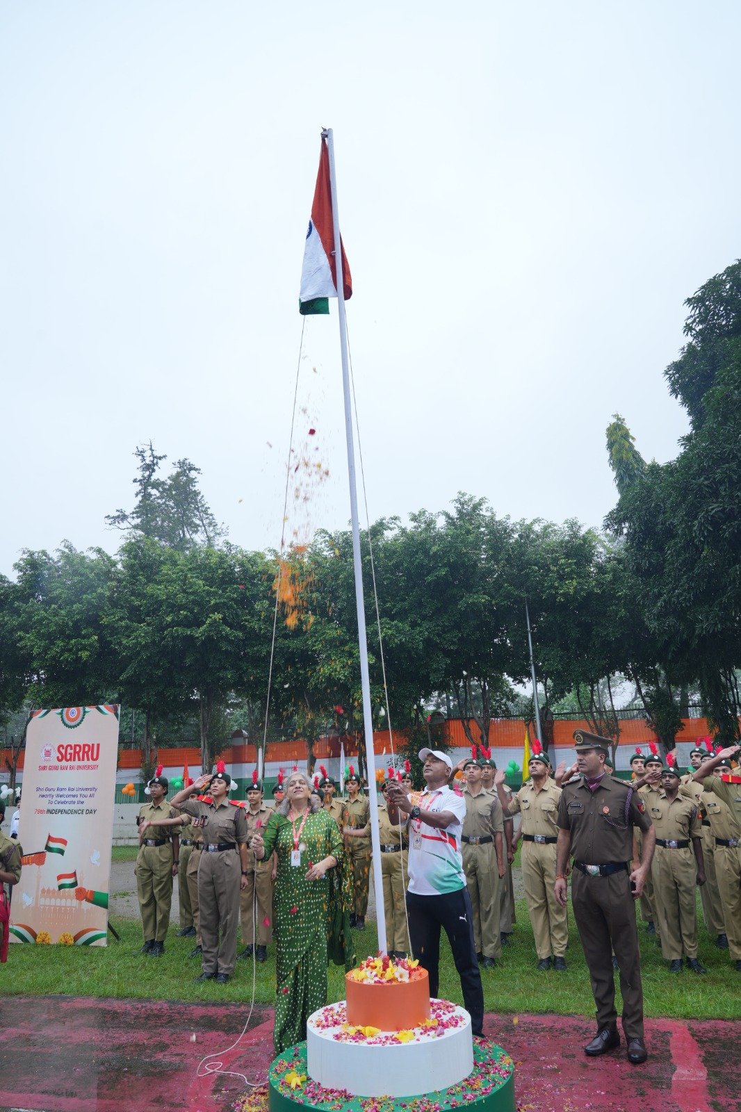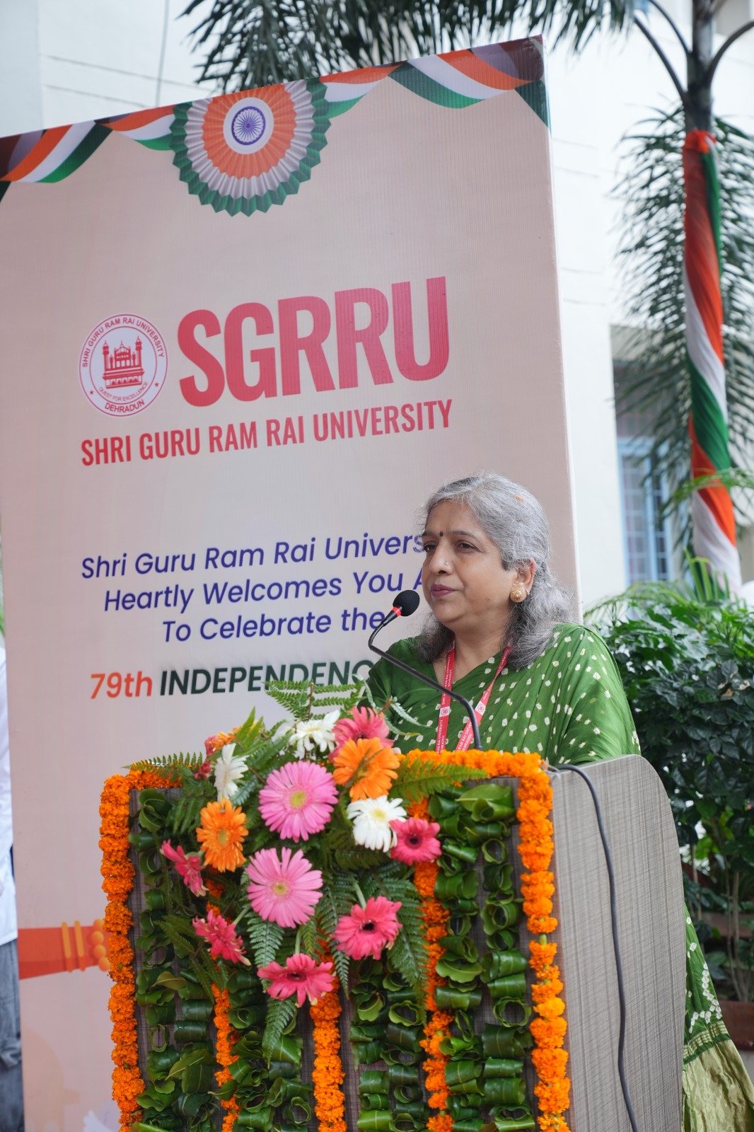 श्री गुरु राम राय विश्वविद्यालय प्रांगण में कुलपति डॉ. कुमुद सकलानी ने सुबह 9ः00 बजे तिरंगा फहराया और उपस्थित सभी को राष्ट्रहित में सक्रिय भूमिका निभाने का आह्वान किया। उन्होंने विश्वविद्यालय की प्रगति में योगदान देने वाले सभी संकाय सदस्यों, कर्मचारियों और छात्र-छात्राओं की सराहना करते हुए कहा कि शिक्षा और सेवा ही राष्ट्र निर्माण की सच्ची नींव हैं।