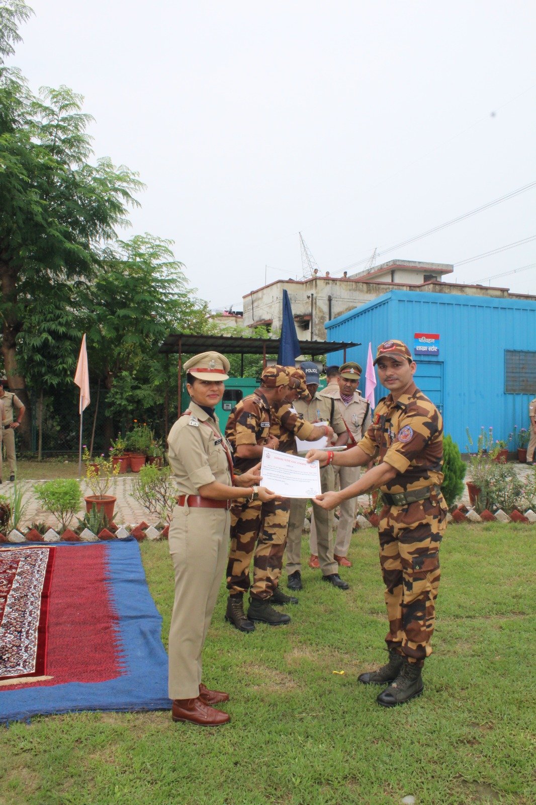 तत्पश्चात कप्तान द्वारा सभी अधिकारियो व कर्मचारियों को राष्ट्रीय पर्व के उल्लास में मिष्ठान वितरण किया गया व एटीएस कर्मचारियों को चारधाम यात्रा, कांवड़ यात्रा, वीवीआइपी ड्यूटी में बेहतर कार्य करने पर प्रशस्ति-पत्र देकर सम्मानित किया। इस अवसर पर अपर पुलिस अधीक्षक जीआरपी अरुणा भारती व जीआरपी, एटीएस के सभी अधिकारी व कर्मचारीगण मौजूद रहे।