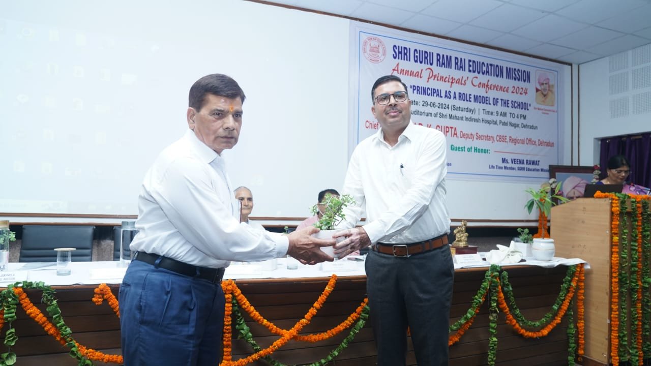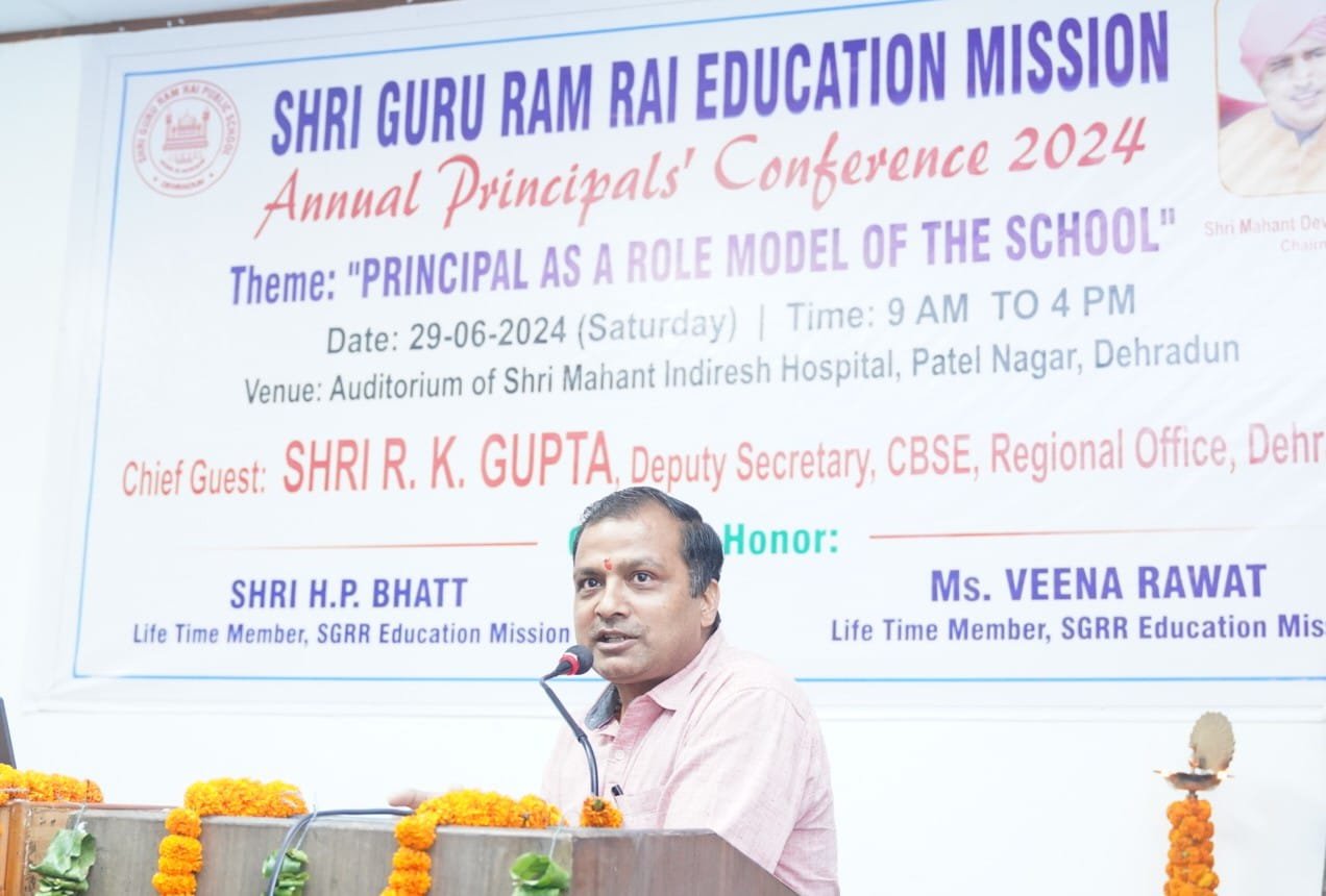 मुख्य अतिथि आर.के.गुप्ता ने कहा कि श्री गुरु राम राय एजुकेशन मिशन के संस्थान गुणवत्तापरक शिक्षा को आम आदमी की पहुंच के अंदर प्रदान कर रहे हैं, यह मिशन का बेहद सराहनीय प्रयास है। उन्होंने सीबीएसई 10वीं एवं 12वीं के परीक्षा परिणामों में एसजीआरआर स्कूली के मेधावी छात्र-छात्राओं के प्रदर्शन को प्रशंसनीय बताया। उन्होंने सभी प्रधानाचार्यों का आह्वाहन किया कि वे सीएबीएसई की वेबसाइट का अध्ययन कर नवीन जानकारियों से अपडेट रहें। एसजीआरआर एजुकेशन मिशन के आजीवन सदस्य एच.पी.भट्ट ने कहा एसजीआरआर एजुकेशन मिशन के अन्तर्गत संचालित स्कूलों का माॅडल प्रधानाचार्यों के अनुकूल है। प्रधानाचार्य एक कुशल प्रशासक की तरह अपने सकारात्मक विचारों व निर्णयों को कियान्वित करवाकर स्कूल व छात्र हितों में निर्णय ले सकता है।