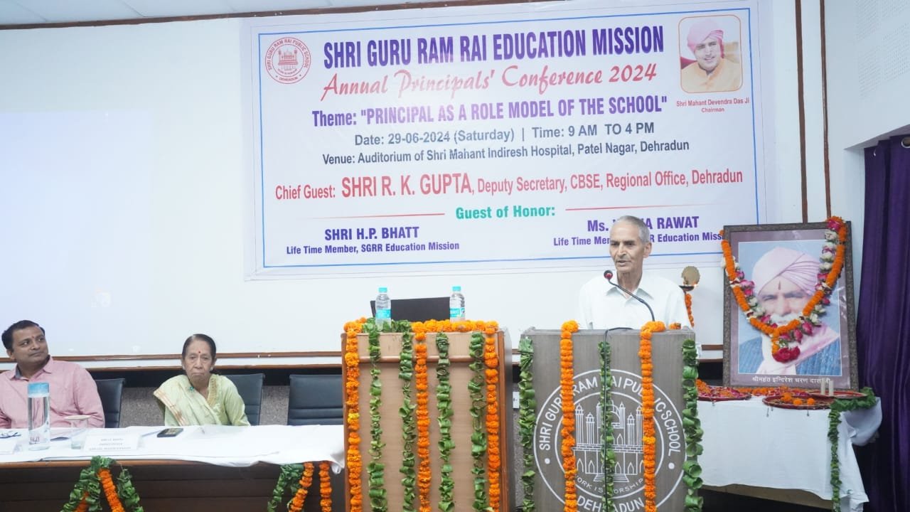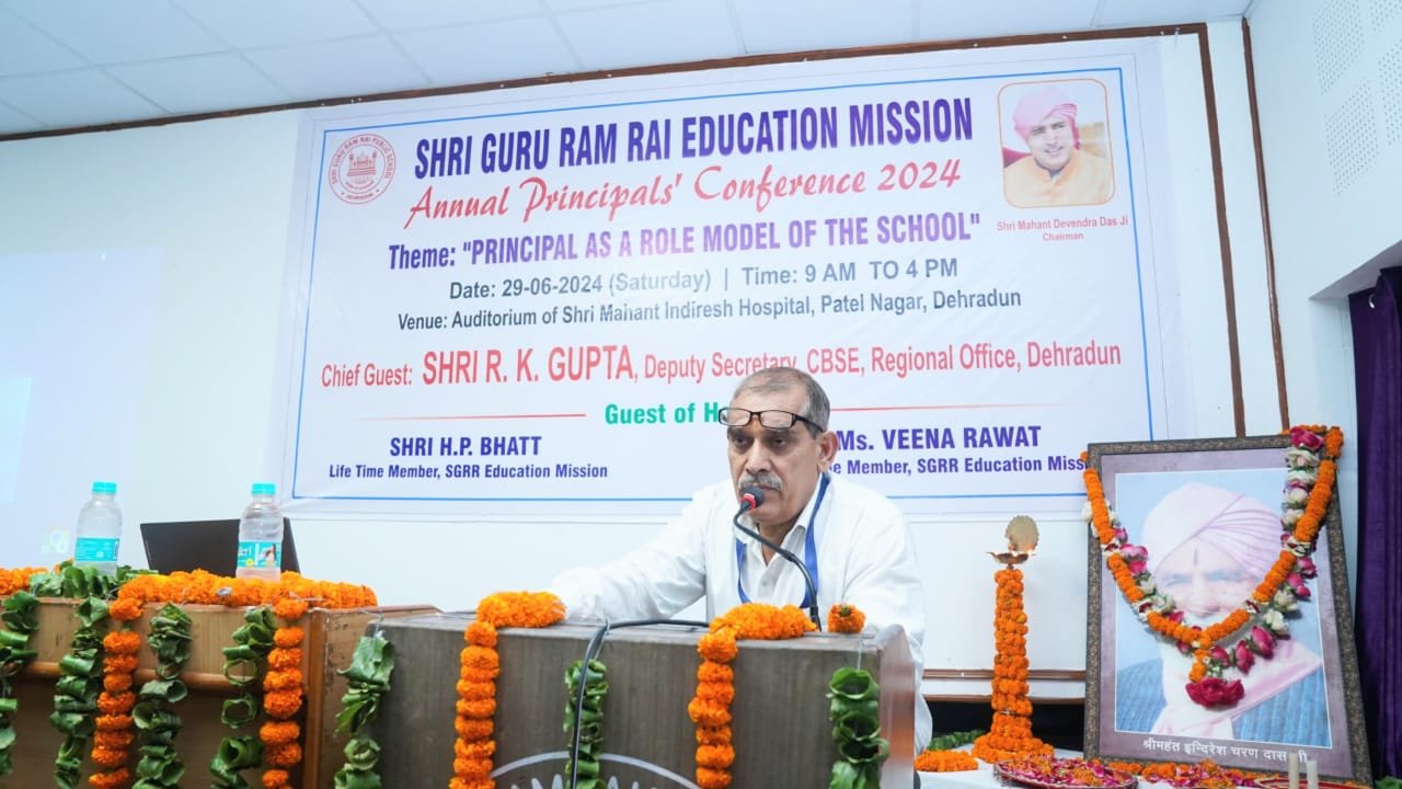 श्री गुरु राम राय एजुकेशन मिशन के अन्तर्गत संचालित एसजीआरआर स्कूलों की वार्षिक प्रधानाचार्य अधिवेशन का शनिवार को आयोजन किया गया। श्री महंत इन्दिरेश अस्पताल के सभागार में विद्यालय के प्रेरणास्त्रोत के रूप में प्रधानाचार्य आधारित कार्यक्रम का शुभारंभ मुख्य अतिथि आर.के.गुप्ता, उप सचिव, सीबीएसई, क्षेत्रीय कार्यालय देहरादून, विशिष्ट अतिथि एच.पी.भट्ट, आजीवन सदस्य एसजीआरआर एजुकेशन मिशन व विशिष्ट अतिथि वीना रावत, आजीवन सदस्य, एसजीआरआर एजुकेशन मिशन ने दीप प्रज्जवलित कर व ब्रहमलीन श्रीमहंत इन्दिरेश चरण दास जी महाराज के चित्र पर माल्यार्पण कर कार्यक्रम का शुभारंभ किया। एसजीआरआर पटेल नगर की छात्र-छात्राओं ने सरस्वती वंदना से कार्यक्रम को भक्तिमय बना दिया। विजय नौटियाल, अधिकृत हस्ताक्षरी प्रबन्धक एसजीआरआर एजुकेशन मिशन ने स्वागत अभिभाषण से कार्यक्रम का शुभारंभ किया।