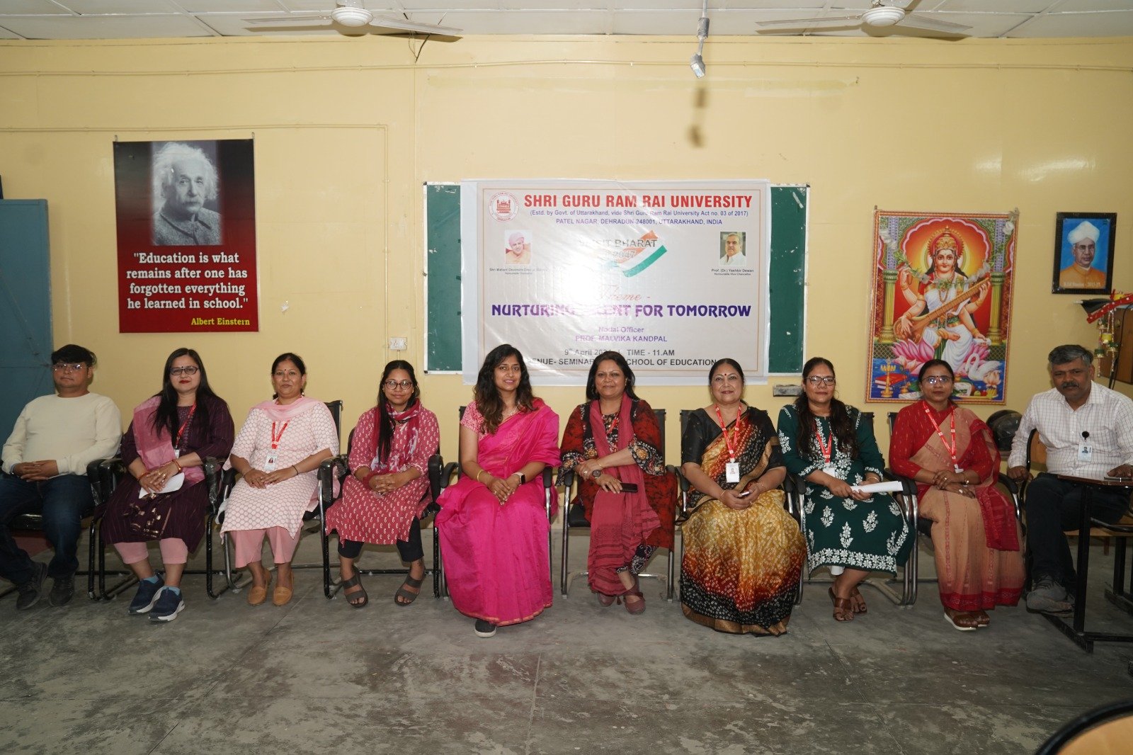 देहरादून : श्री गुरु राम राय विश्वविद्यालय में विकसित भारत @2047 की थीम के तहत कार्यशाला का आयोजन किया गया। कार्यशाला की थीम ‘भविष्य के लिए प्रतिभा का पोषण’ रही। कार्यशाला का आयोजन श्री गुरु राम राय विश्वविद्यालय के स्कूल आफ एजुकेशन के सभागार में किया गया। इस अवसर पर अजीम प्रेमजी फाउंडेशन से डॉ प्रिया जायसवाल, वत्सल ढौंडियाल, शिवाली द्वारा विभिन्न प्रकार की रचनात्मक गतिविधियों से छात्रों का उत्साहवर्धन किया गया । इस अवसर पर विश्वविद्यालय के कुलाधिपति श्रीमहंत देवेंद्र दास जी महाराज और कुलपति प्रोफेसर डॉ. यशबीर दीवान ने आयोजकों को शुभकामनाएं प्रेषित की।