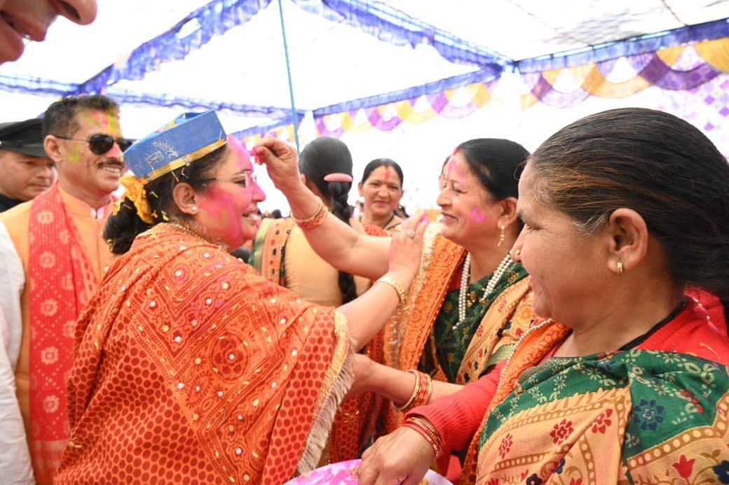 इसके पश्चात भाबर मण्डल महिला मोर्चा की मण्डल अध्यक्ष सिमरन बिष्ट द्वारा शिव मंदिर, झंडीचौड़ में आयोजित महिलाओं के होली मिलन कार्यक्रम में उन्होंने सहभागिता की। इस अवसर पर महिलाओं ने पारंपरिक होली गीतों के साथ उत्सव मनाया। विधानसभा अध्यक्ष ऋतु खण्डूड़ी भूषण ने महिलाओं को होली की शुभकामनाएं देते हुए उनके सामाजिक योगदान की सराहना की।