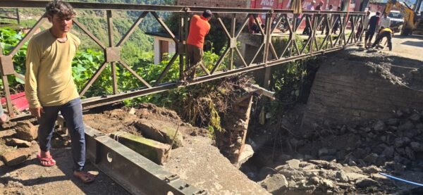 रुद्रप्रयाग : 28 अगस्त को जनपद रुद्रप्रयाग के बसुकेदार क्षेत्र में आई दैवीय आपदा के दौरान ल्वारा के समीप स्थित 12 मीटर लंबे स्पान पुल के क्षतिग्रस्त हो जाने से मयाली गुप्तकाशी मार्ग पूरी तरह अवरुद्ध हो गया था। यह मार्ग क्षेत्र की लाइफलाइन माना जाता है और इसके बंद होने से आम जनजीवन बुरी तरह प्रभावित हुआ।लेकिन अब इस संकट के समाधान की ओर ठोस कदम उठाए गए हैं। लोक निर्माण विभाग ने पुल के पुनर्निर्माण कार्य को युद्धस्तर पर शुरू कर दिया है। वर्तमान में इरेक्शन वर्क जोरों पर है, और वेली ब्रिज के पार्ट्स को तेजी से जोड़ा जा रहा है।