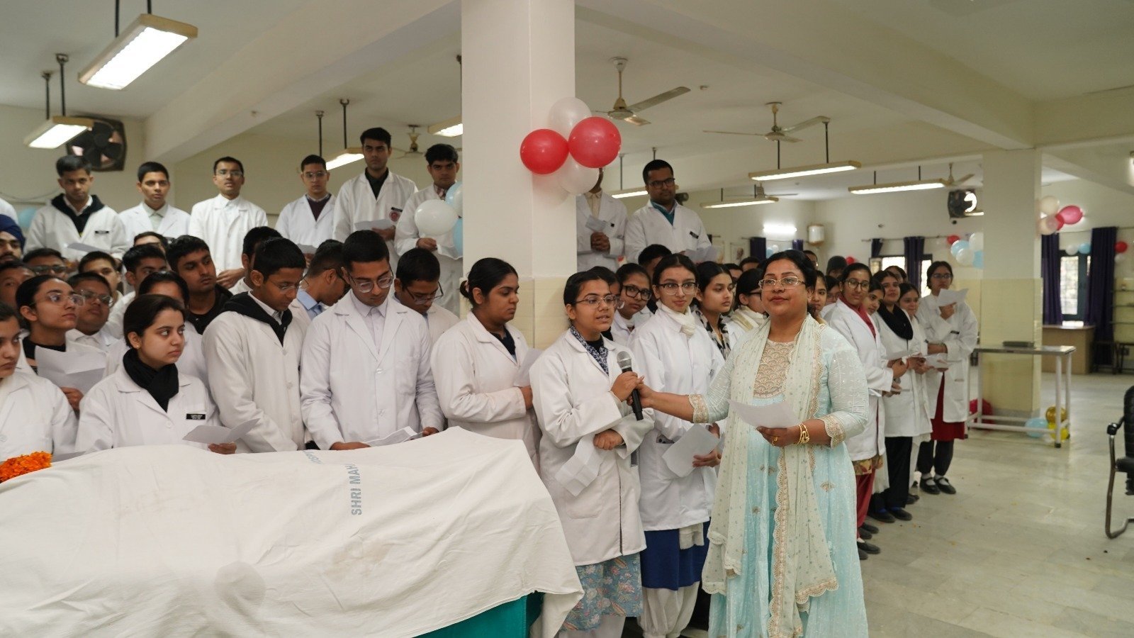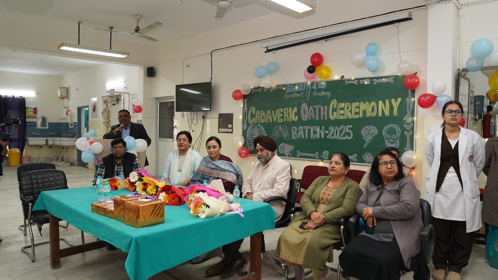 अपने संबोधन मेें डाॅ. हरमीत कौर ने कैडैवरिक शिक्षा के महत्व पर विशेष जोर दिया। उन्होंने कहा कि कैडैवर मेडिकल छात्र-छात्राओं का प्रथम शिक्षक होता है। उन्होंने बताया कि कैडैवरिक ओथ एक पवित्र प्रतिज्ञा है, जिसमें विद्यार्थी मानव शरीर को डिस्क्ट करने से पूर्व दाता के प्रति कृतज्ञता व्यक्त करते है। कैडैवर को अपने प्रथम गुरु के रूप में स्वीकार करते है और प्राप्त ज्ञान का उपयोग मानवता की सेवा में नैतिक तरीके से करने का संकल्प लेते है।