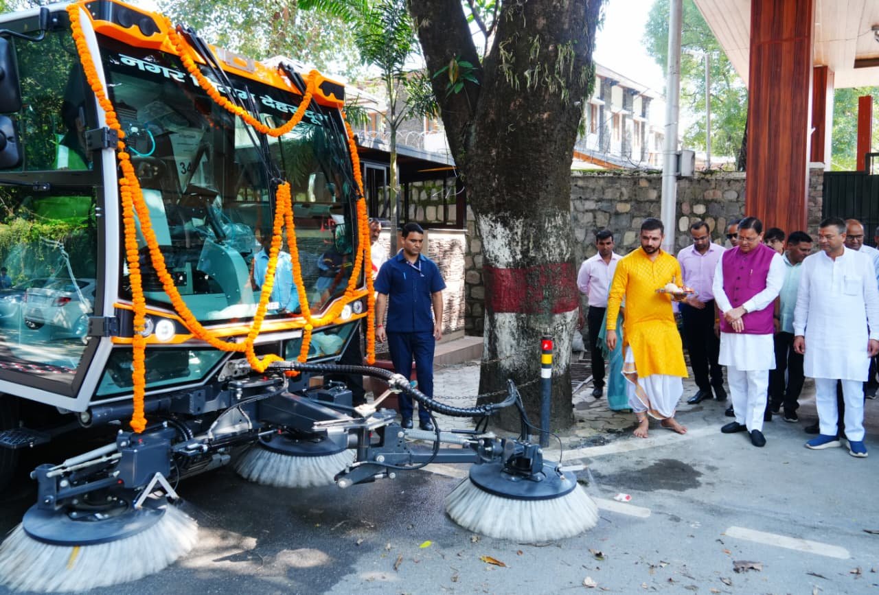 मुख्यमंत्री पुष्कर सिंह धामी ने नगर निगम देहरादून द्वारा संचालित वैक्यूम बेस्ड रोड़ स्वीपिंग मशीन का किया फ्लैग ऑफ