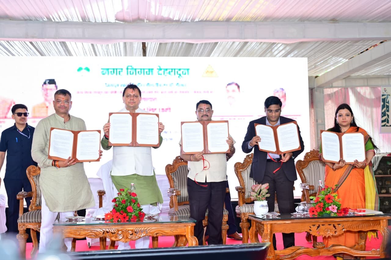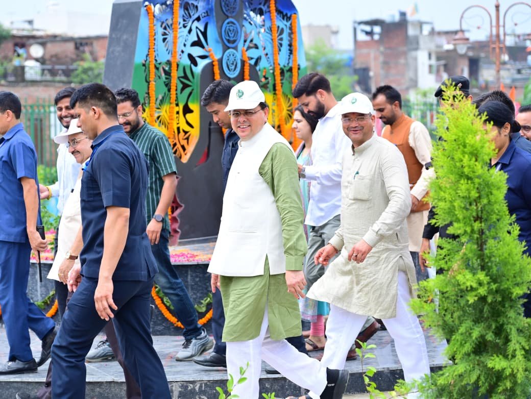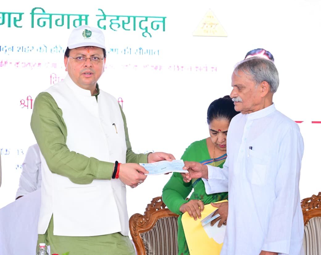 देहरादून : मुख्यमंत्री पुष्कर सिंह धामी ने बुधवार को देहरादून नगर निगम के अंतर्गत केदारपुरम में योगा पार्क एवं अन्य विकास कार्यों का लोकार्पण एवं शिलान्यास किया। इस अवसर पर उन्होंने एआई चैटबॉट ‘निगम सारथी’ लॉन्च किया और हरित नीति के डोक्यूमेंट का अनावरण भी किया। मुख्यमंत्री ने पर एक पेड़ माँ नाम के नाम के तहत रूद्राक्ष का पौधा रोपा, जो सरकार द्वारा चलाये गये बृहद पौधारोपण अभियान के तहत नगर निगम क्षेत्र देहरादून के अन्तर्गत इस वर्ष रोपा गया एक लाखवां पौधा था। कार्यक्रम में मुख्यमंत्री ने स्वच्छता सम्मान सेनानियों और कर निरीक्षकों को सम्मानित भी किया। इस अवसर पर मुख्यमंत्री ने नशा मुक्ति के लिए सामूहिक शपथ भी दिलाई।