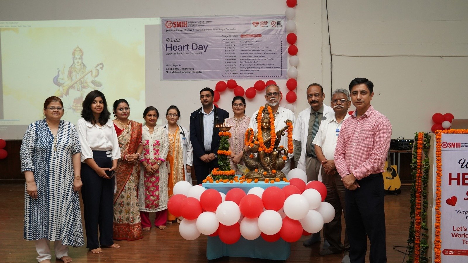 देहरादून : विश्व हृदय दिवस (वर्ल्ड हार्ट डे) के अवसर पर श्री महंत इन्दिरेश अस्पताल के सभागार में रंगारंग ‘कीप द बीट, लव योर हार्ट‘ थीम पर रंगारंग व शैक्षणिक कार्यक्रम का आयोजन हुआ। कार्यक्रम का शुभारंभ श्री महंत इन्दिरेश अस्पताल के हृदय रोग विभागध्यक्ष प्रो डाॅ. तनुज भाटिया द्वारा स्वागत अभिभाषण से किया गया। उन्होने कार्यक्रम में उपस्थित प्रतिभागियों को विश्व हृदय दिवस व उसके महत्व के विषय मे जानकारी दी। उन्होंने कहा कि विश्वभर में 29 सितंबर विश्व हृदय दिवस के रूप मे मनाया जाता है। इसके उपरांत सरस्वती वंदना की गई।