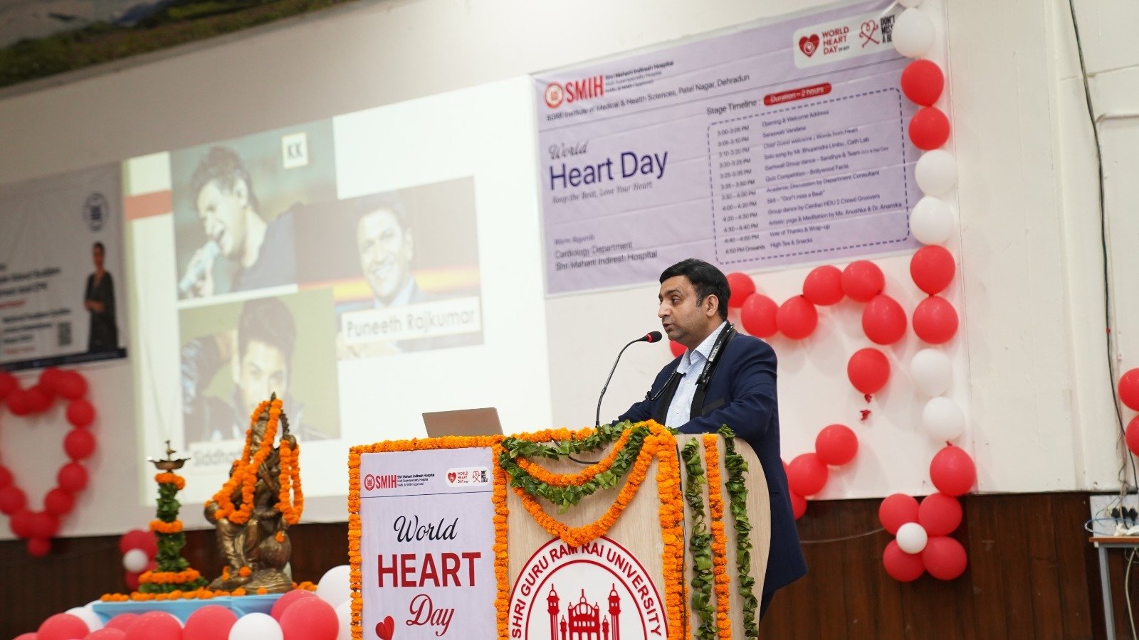 श्री गुरु राम राय इस्टीट्यूट ऑफ मेडिकल एण्ड हैल्थ साइसेज के निदेशक डाॅ. मनोज गुप्ता, प्राचार्य डाॅ. अशोक नायक, श्री महंत इन्दिरेश अस्पताल के चिकित्सा अधीक्षक डाॅ. गौरव रतूड़ी के द्वारा संयुक्त रूप से दीप प्रज्जवलित कर किया। इसके बाद कैथलैब स्टाफ भूपेन्द्र लिंबू गिटारिस्ट के द्वारा गिटार की धुन पर सुरमयी गीत गा कर सभी प्रतिभागियो को मंत्रमुक्त किया। सीसीयू एवं डे केयर स्टाफ सध्या व टीम ने गढवाली गीतो की धुन पर समूह नृत्य पेश किया गया। इसके उपरांत रिवाइव हार्ट फाउण्डेशन द्वारा डिजाइन की गई क्लीनिकल कोशियन्स इन कार्डियोलाॅजी विषयक प्रश्नोत्तरी प्रतियोगिता को प्रो डाॅ. तनुज भाटिया द्वारा आयोजित किया गया जिसमें प्रतिभागियो का हृदय रोगो के संबध में ज्ञानवर्धन किया गया। मानव पुतला (मैनीक्वन) के माध्यम से हृदय रोग विशेषज्ञो ने मरीज को सीपीआर देकर आपातकाल में जीवन बचाना सिखाया गया। कार्डिक एचडीयू स्टाफ द्वारा समूह नृत्य कर समा बाधा गया। आर्टिस्टीक योगा को व्यवहारिक रूप से 13 वर्षीय बालिका अनुष्का जोशी द्वारा किया व समझाया गया। डाॅ. अनामिका द्वारा योग व ध्यान के विषय में ज्ञानवर्धन किया गया। प्रो डाॅ. तनुज भाटिया द्वारा कार्यक्रम मे अंत मे धन्यवाद ज्ञापन दिया गया।