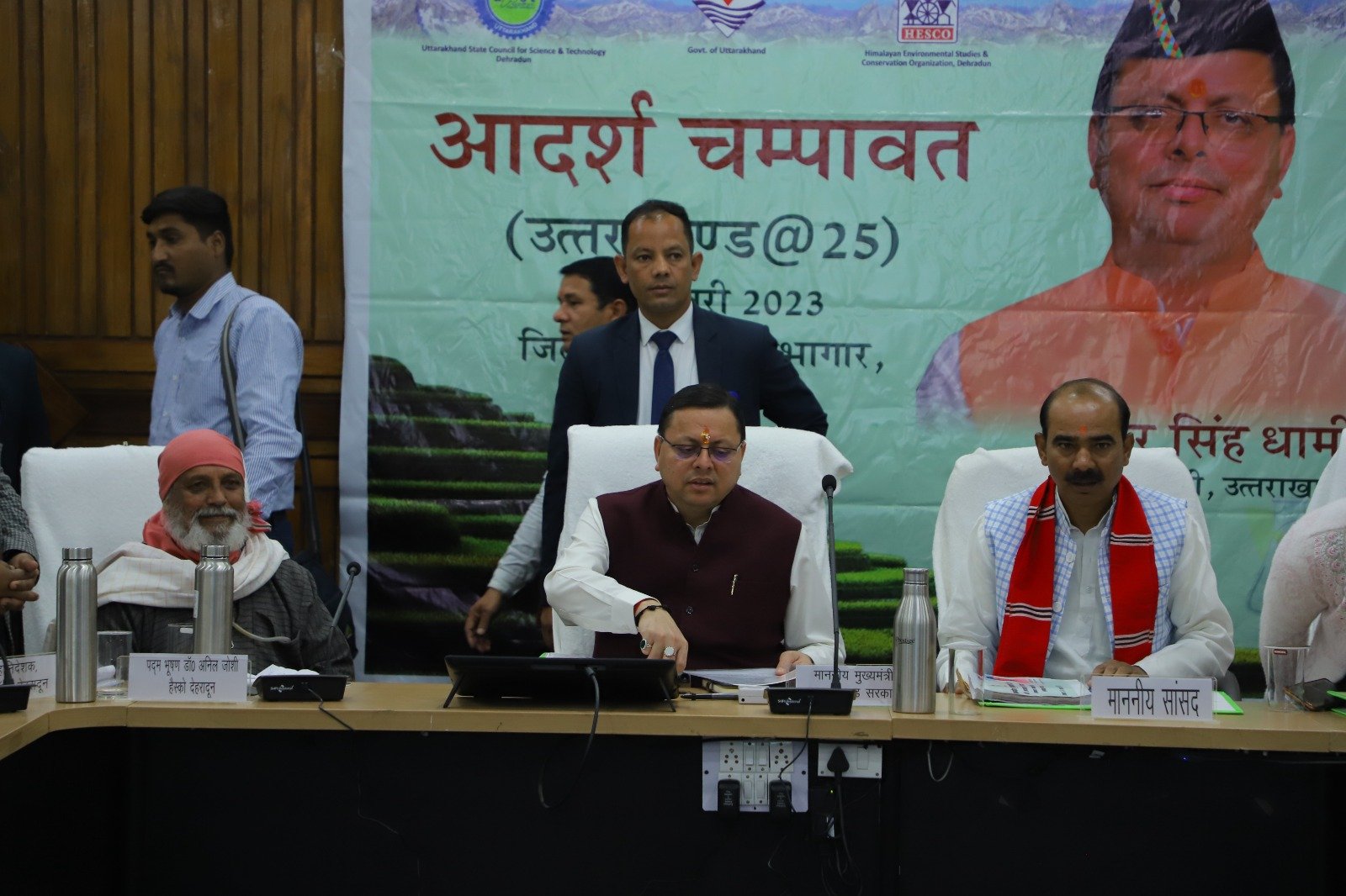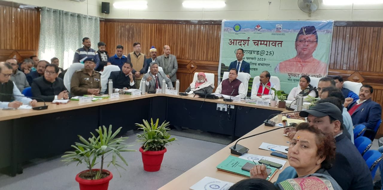 चंपावत/देहरादून : आदर्श चम्पावत, उत्तराखण्ड @ 25 के सम्बन्ध में शुक्रवार को मुख्यमंत्री पुष्कर सिंह धामी की अध्यक्षता में कलक्ट्रेट सभागार में बैठक आयोजित की गई। बैठक में आदर्श चम्पावत हेतु नोडल एजेंसी उत्तराखण्ड विज्ञान एवं प्रौद्योगिकी परिषद् के साथ विभिन्न राष्ट्रीय स्तर के संस्थान, एजेंसियों व रेखीय विभागों के अधिकारियों व वैज्ञानिकों द्वारा प्रतिभाग किया गया। मुख्यमंत्री ने कहा कि प्रधानमंत्री नरेन्द्र मोदी ने 21वीं सदी के तीसरे दशक को उत्तराखण्ड का दशक बताया है। इसी परिकल्पना को पूर्ण करने एवं सभी हिमालयी राज्यों के समक्ष उत्तराखण्ड को एक मॉडल के रूप में विकसित करने के लिए उत्तराखण्ड @ 25 हम जनपद चंपावत को एक मॉडल जिला बनाने में सफल होंगे। यह योजना लक्ष्य तक पंहुचे हम सभी की जिम्मेदारी है। उन्होंने कहा कि आत्मनिर्भर और आदर्श उत्तराखण्ड का निर्माण तभी संभव है, जब राज्य का हर जनपद हर गांव आदर्श होगा।