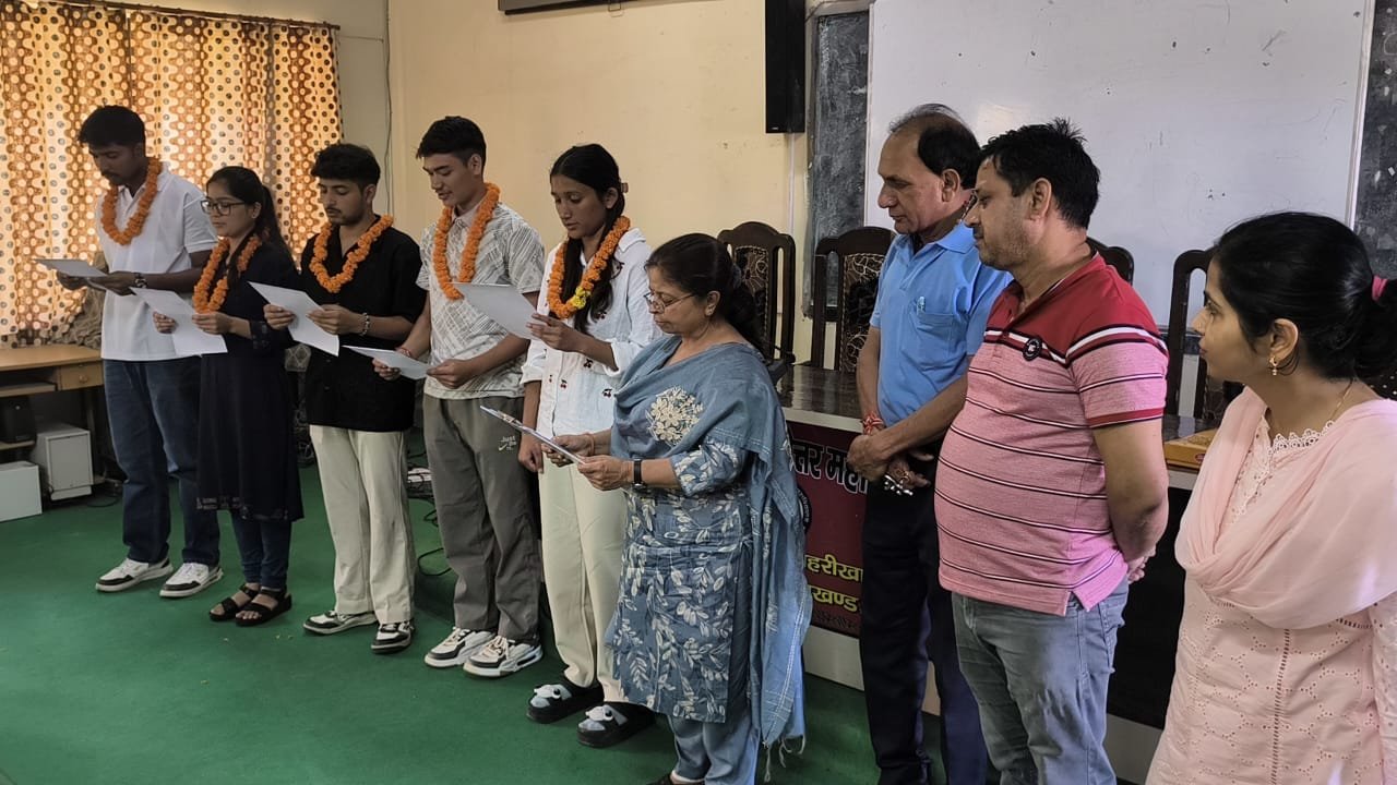 लैंसडाउन : भक्त दर्शन राजकीय स्नातकोत्तर महाविद्यालय जयहरीखाल में सत्र 2025-26 में छात्र संघ के पदाधिकारियों के निर्विरोध चुने जाने के फलस्वरूप शपथग्रहण समारोह का आयोजन किया गया। अध्यक्ष पद पर छात्र सिमरन रावत बी. ए. प्रथम सेमेस्टर, उपाध्यक्ष पद पर प्रियांशु बिष्ट बी. कॉम. पंचम सेमेस्टर, सचिव पद पर नीरज बडोला बी. ए. प्रथम सेमेस्टर, सहसचिव पद पर अनुष्का बिष्ट एम. ए. तृतीय सेमेस्टर (राजनीति विज्ञान) तथा विश्वविद्यालय प्रतिनिधि पद पर मोहम्मद अरमान निर्विरोध चुने गए। कोषाध्यक्ष पद पर किसी भी विद्यार्थी के नामांकन न होने के कारण पद रिक्त रहा।