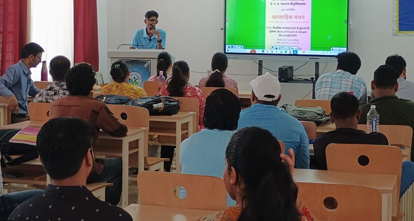 केंद्र के समन्वयक प्रो. एमएम सेमवाल ने युवाओं की उत्पादकता, राजनीतिक समझ, और डिजिटल दक्षता की महत्ता पर बोलते हुए कहा कि युवा यदि समर्पित, कुशल एवं दूरदर्शी बनकर कार्य करे, तो वह राष्ट्र निर्माण में निर्णायक भूमिका निभा सकता है। हेमवती नंदन बहुगुणा गढ़वाल विश्वविद्यालय के कुलपति, प्रो प्रकाश सिंह ने युवाओं को आश्वस्त करते हुए कहा यदि किसी भी प्रकार की अकादमिक या प्रशासनिक समस्या हो, तो छात्रगण मुझसे कभी भी, कहीं से भी संपर्क कर सकते हैं। संकाय सदस्य, डॉ. प्रकाश सिंह एवं डॉ. आशीष बहुगुणा ने भी अपने विचार प्रस्तुत किए। उन्होंने युवाओं को समाज परिवर्तन का अग्रदूत बताते हुए कहा विकसित भारत का मार्ग उन्हीं युवाओं के संकल्प और सृजनशीलता से होकर गुजरता है, जो राष्ट्र सेवा को अपना धर्म मानते हैं। कार्यक्रम में विभिन्न विभागों के शोध छात्रों ने भी अपने विचार व्यक्त किए। कार्यक्रम का संचालन साक्षी वर्मा ने किया।
